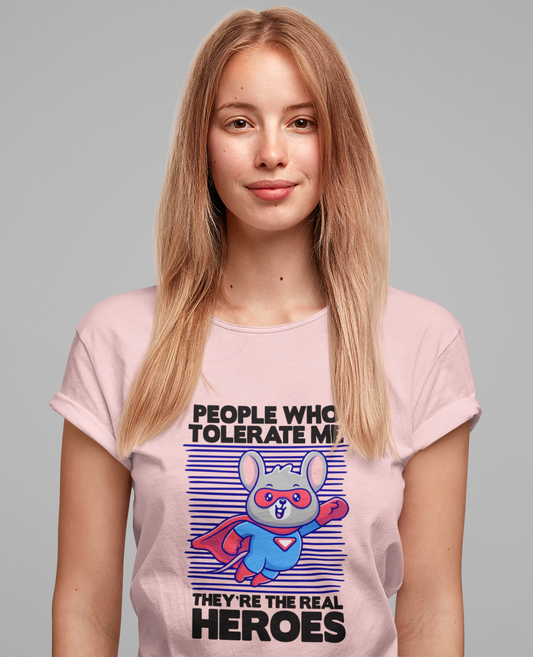 People Who Tolerate Me Are The Real Super heroes Tshirt Rat in Superhuman Outfit Funny Hero Design