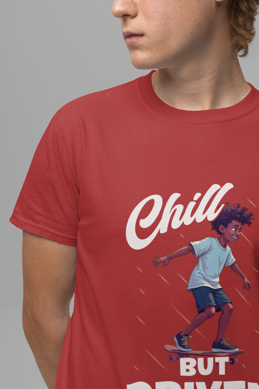 Chill but Driven – Happy Boy on Skateboard Graphic T-Shirt