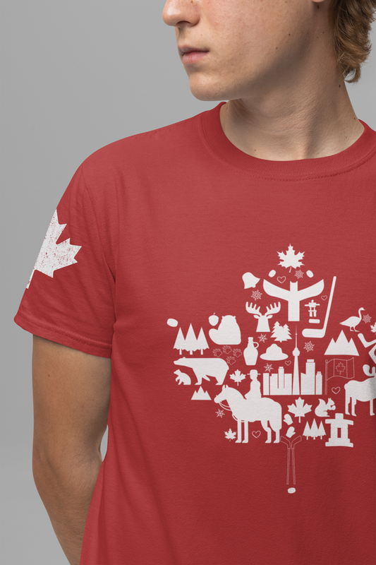 Canada Icons collage of iconic Canadian symbols Maple - Red Print T-Shirt