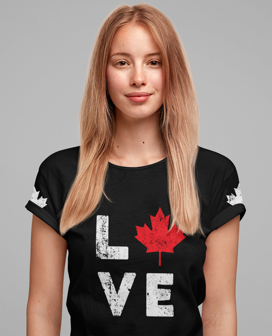 Canada Maple Leaf Love with Canada Bold Text T-Shirt