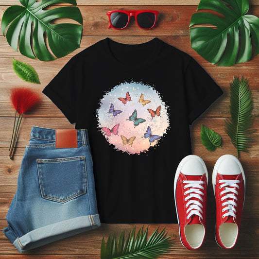Butterfly Bloom Shirt, Vibrant Nature Tee, Colorful Insect T Shirt, Garden Life Apparel, Joyful Nature Lover Graphic Top