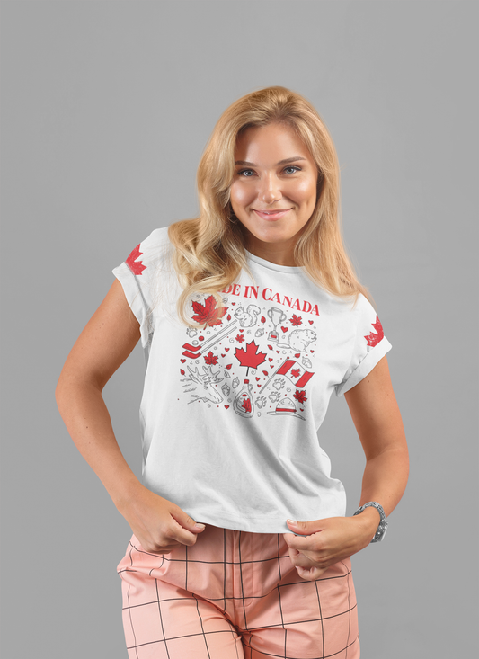 Made In Canada Iconic Symbols - Red & White outline Print T-Shirt