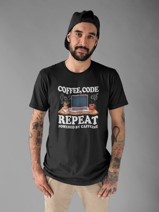 Coffee, Code, Repeat Official Graphic Statement Tee for Bold Minds, Modern Thinkers, and Everyday Expression Everywhere