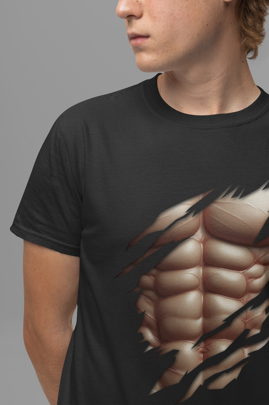 Fake Muscles Shirt, Ripped Chest Costume Tee, Six Pack Abs Funny Graphic T Shirt, Joke Fitness Apparel, Party Costume Gym Gag Top