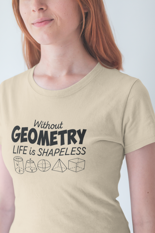 Math Humor T-Shirt – Without Geometry Life Is Shapeless with 3D Shapes