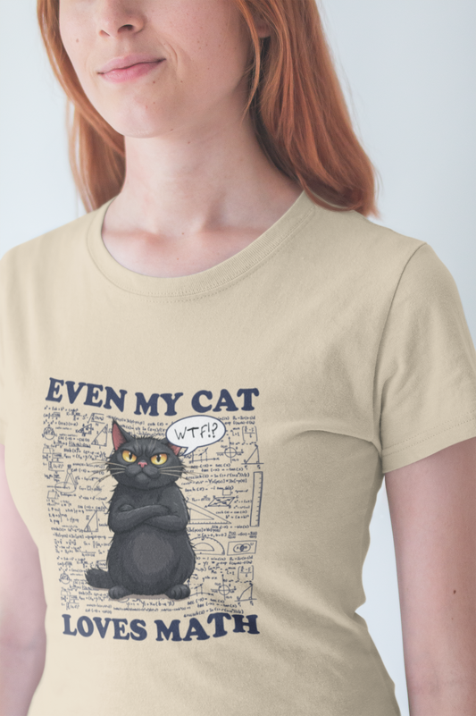 Even My Cat Loves Math T-Shirt – Funny Cat and Math Equations Graphic Tee