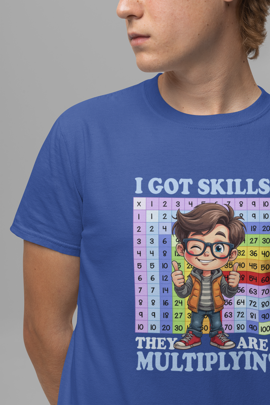 I Got Skills and They Are Multiplying Tshirt – Happy Boy with Thumbs Up & Numbers 1 to 100