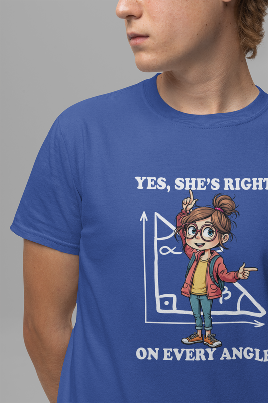 Yes, She Is Right On Every Angle Tshirt – Happy Girl with Right Angle Triangle Graphic