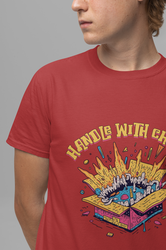 Handle With Chaos – Vibrant Colorful Box Embracing life’s Wild Moments Graphic T-Shirt