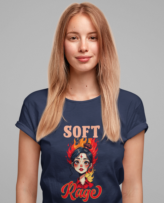 Soft Rage – Emotional Woman with Fiery Background Graphic T-Shirt