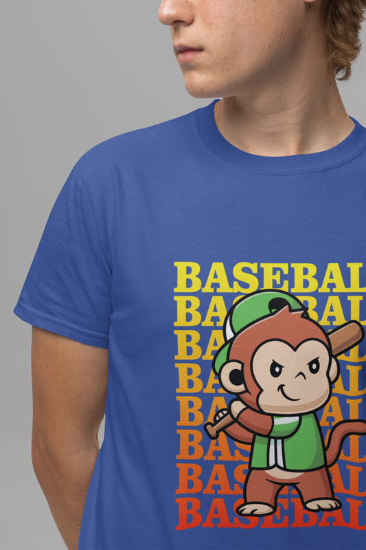 Baseball tshirt - Baseball Monkey Player Tshirt Large Graphic Monkey Baseball Player with Baseball Text Background