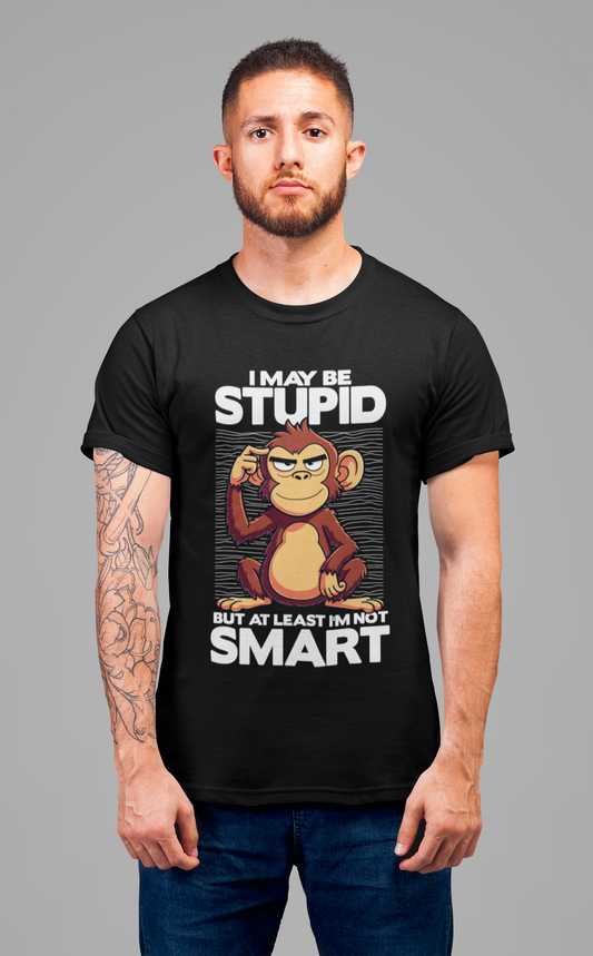 I May Be Stupid But At Least I'm Now Smart Tshirt – Thoughtful Sitting Monkey Graphic
