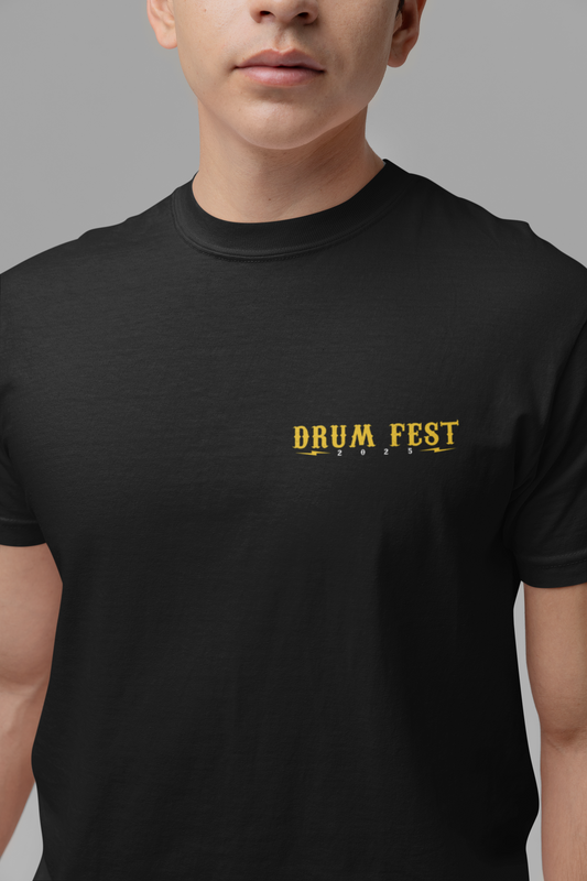 All Bones Drum Fest 2025 T-Shirt – Skeleton Drummer Fiery Rock Design