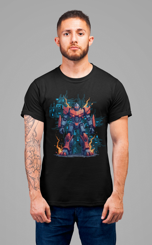 Ready for Anything – Robot Transformer on Fiery Ground Graphic T-Shirt