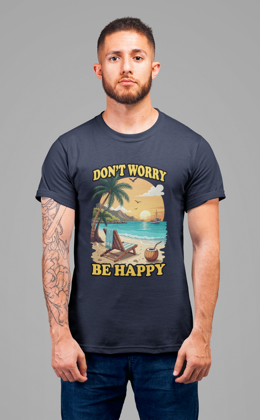 Don’t Worry Be Happy T-Shirt – Retro Beach Sunset Graphic Tee