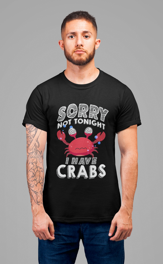Sorry Not Tonight I Have Crabs Tshirt – Funny Worried Crab with Rolling Eyes Graphic