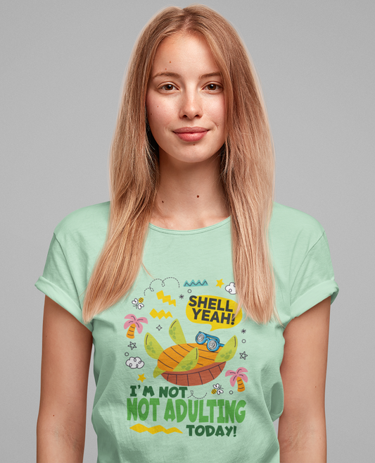 Shell Yeah I’m Not Adulting Today Tee, Turtle Humor Shirt, Lazy Mood Graphic Tee, Funny Shell Joke Top, No Responsibilities Gift