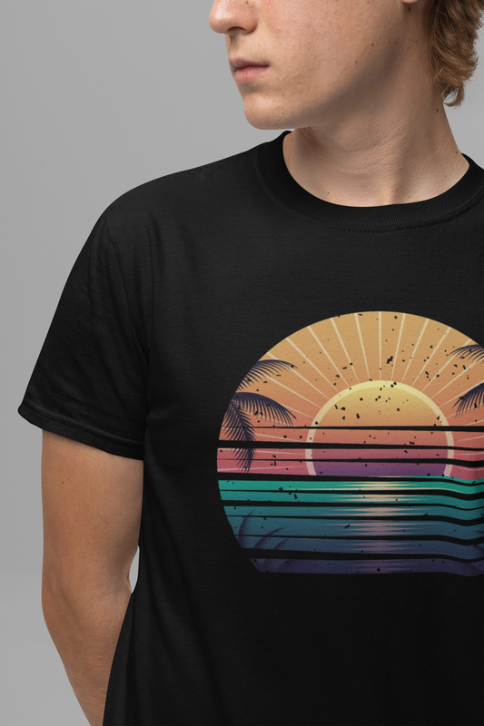 Sun Kissed & Ocean Blissed – Beach Sunset with Palm Trees Graphic T-Shirt
