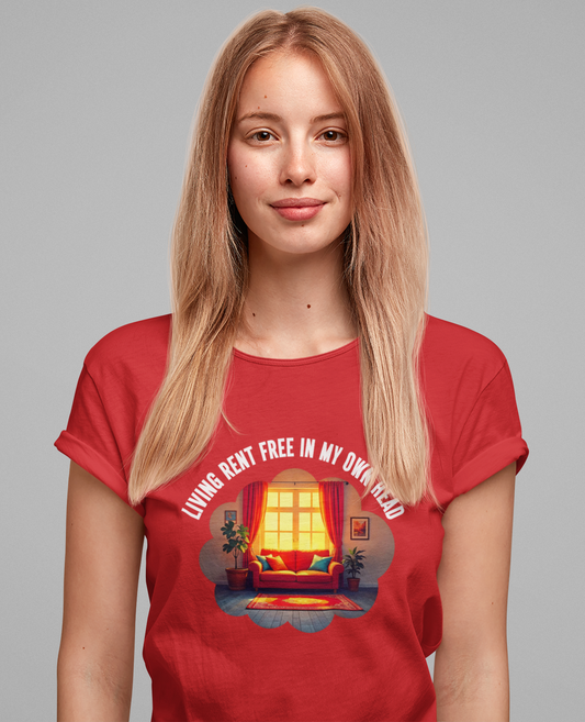 Living Rent Free in My Own Head – Cozy Living Room with Sofa & Sunlit Window Graphic T-Shirt