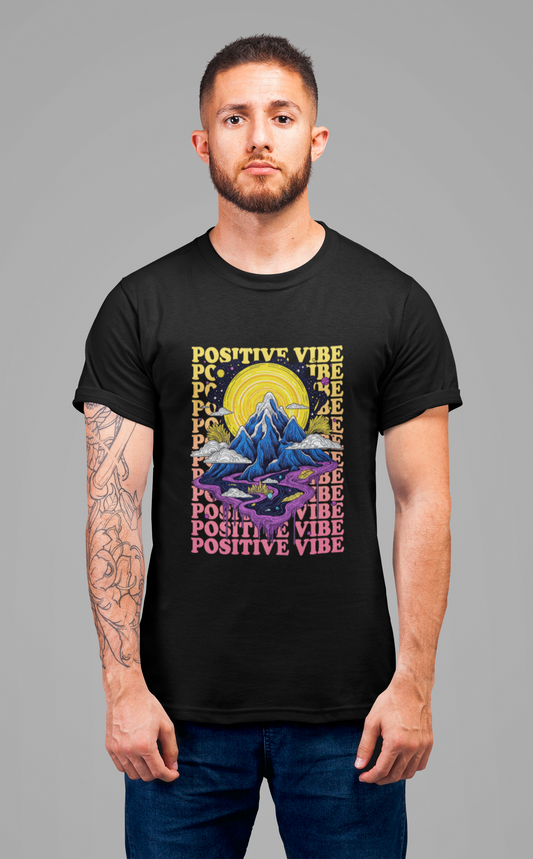 Positive Vibes – Cosmic Sun and Solar System Drip Graphic T-Shirt
