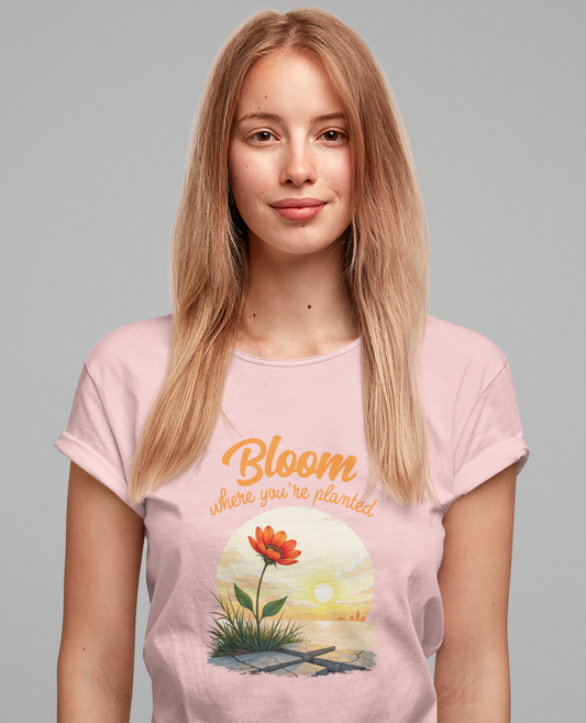 Bloom Where You Are Planted | Inspirational Flower & Sunrise T-Shirt