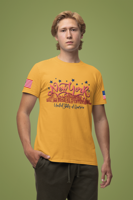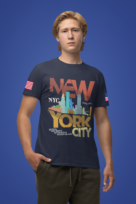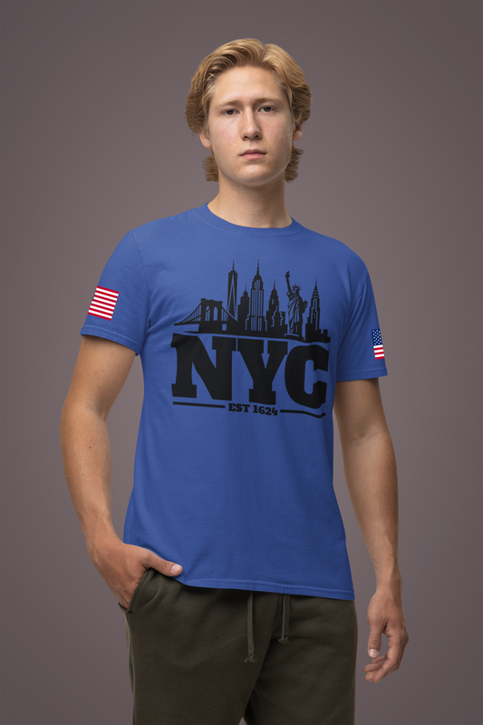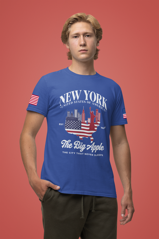 New York The Big Apple T-Shirt - NYC Skyline USA Flag Design Est 1624