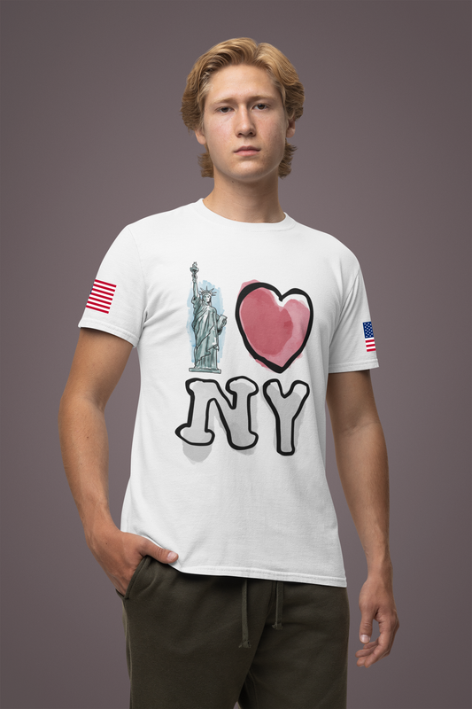 I Love NY T-Shirt - Classic USA Flag Heart Patriotic New York City Design