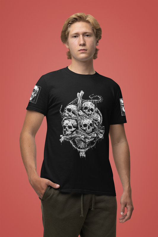 Gothic Skull Pile T-Shirt – Dark Horror Skeleton Art Graphic Tee