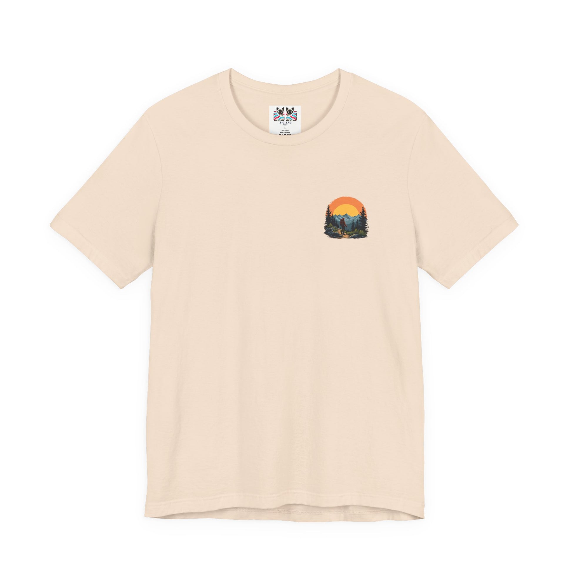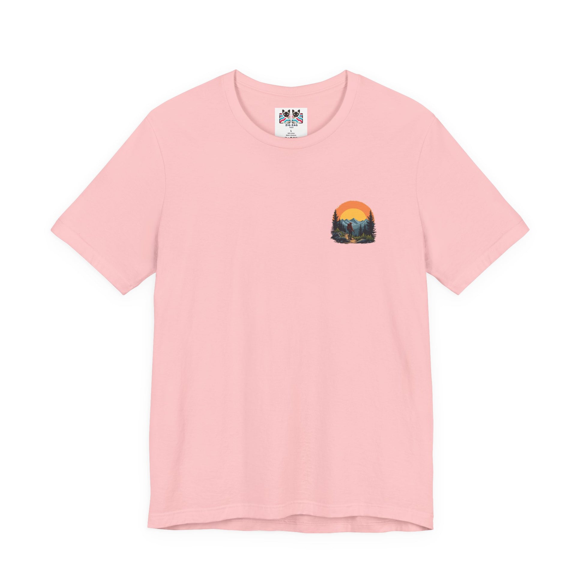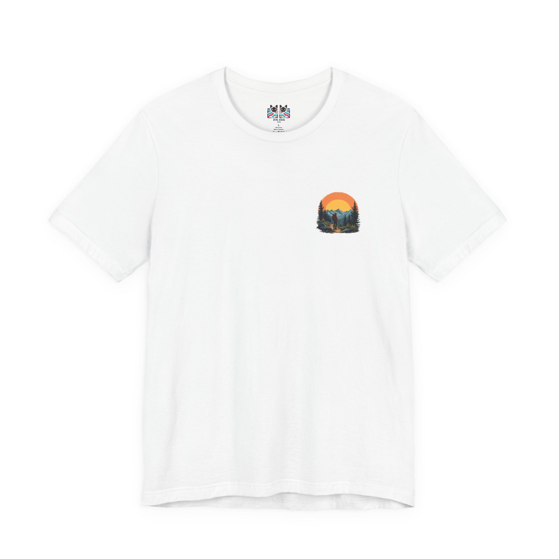 Embrace the thrill of exploration with this inspiring tshirt featuring a man in hiking gear standing boldly at the edge of rugged rocks, gazing at majestic mountains stretching into the distance. Topped with the motivating text “Adventure Seeker, Nature Lover, Sunset Chaser,” this design is perfect for hikers, outdoor enthusiasts, and anyone who loves the wild call of the mountains.