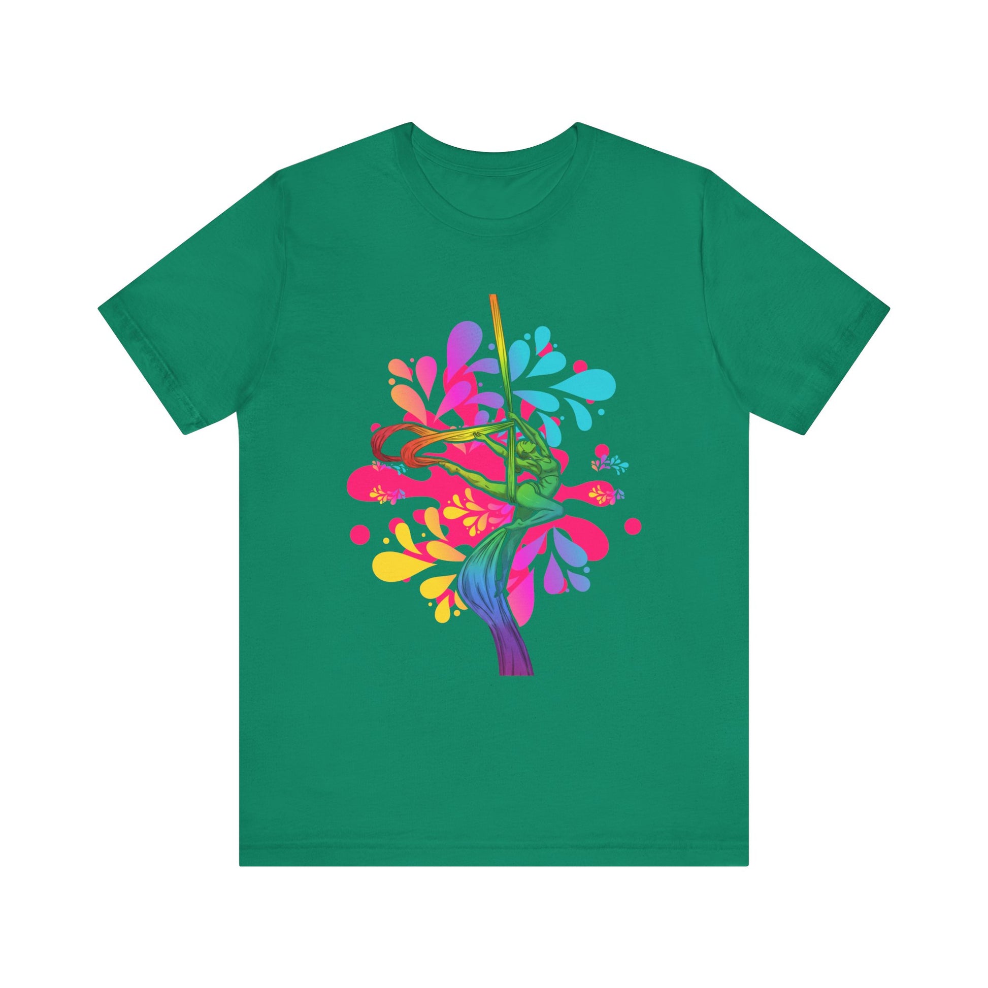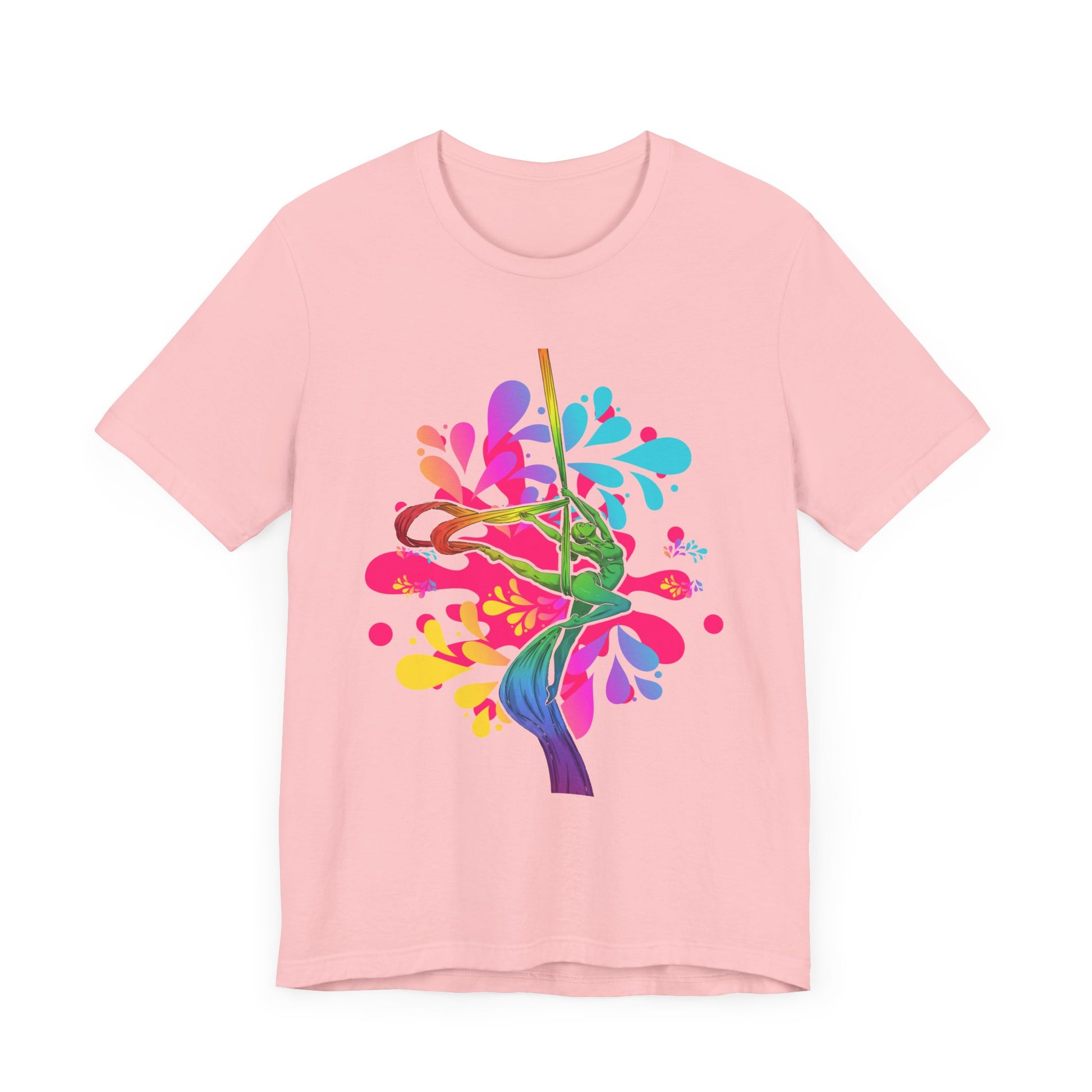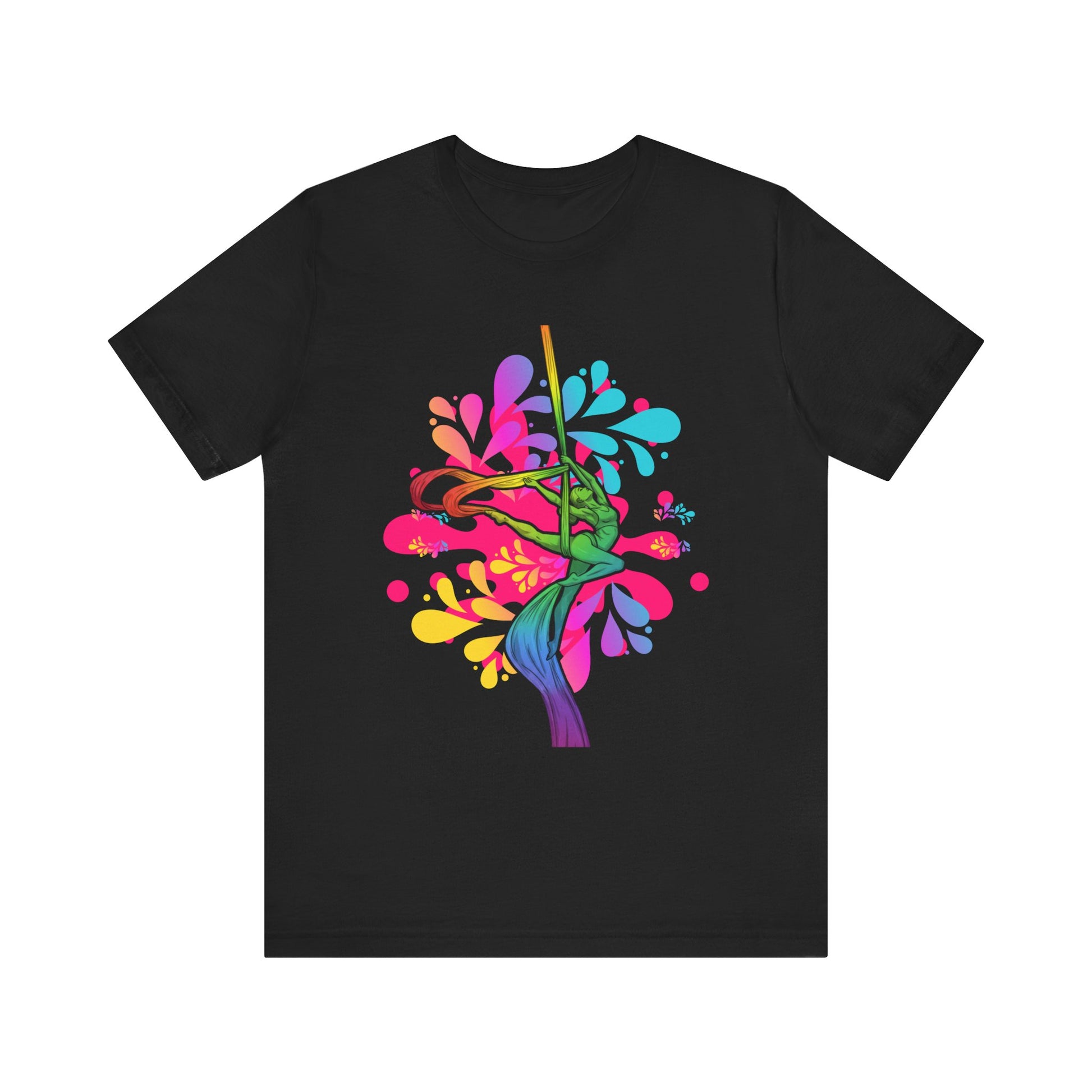 Express your passion for aerial silks with the vibrant "Aerialist Silks Rainbow" t-shirt! Featuring a dynamic and colorful design, this tee is perfect for aerial performers, dancers, and circus enthusiasts who love to showcase their artistry in style. Whether you're soaring through silks or supporting the aerial arts, this comfortable tee is a great fit. The unisex fit is designed for all body types. See size chart and video guide. Love it guaranteed! Your satisfaction is our top priority.
