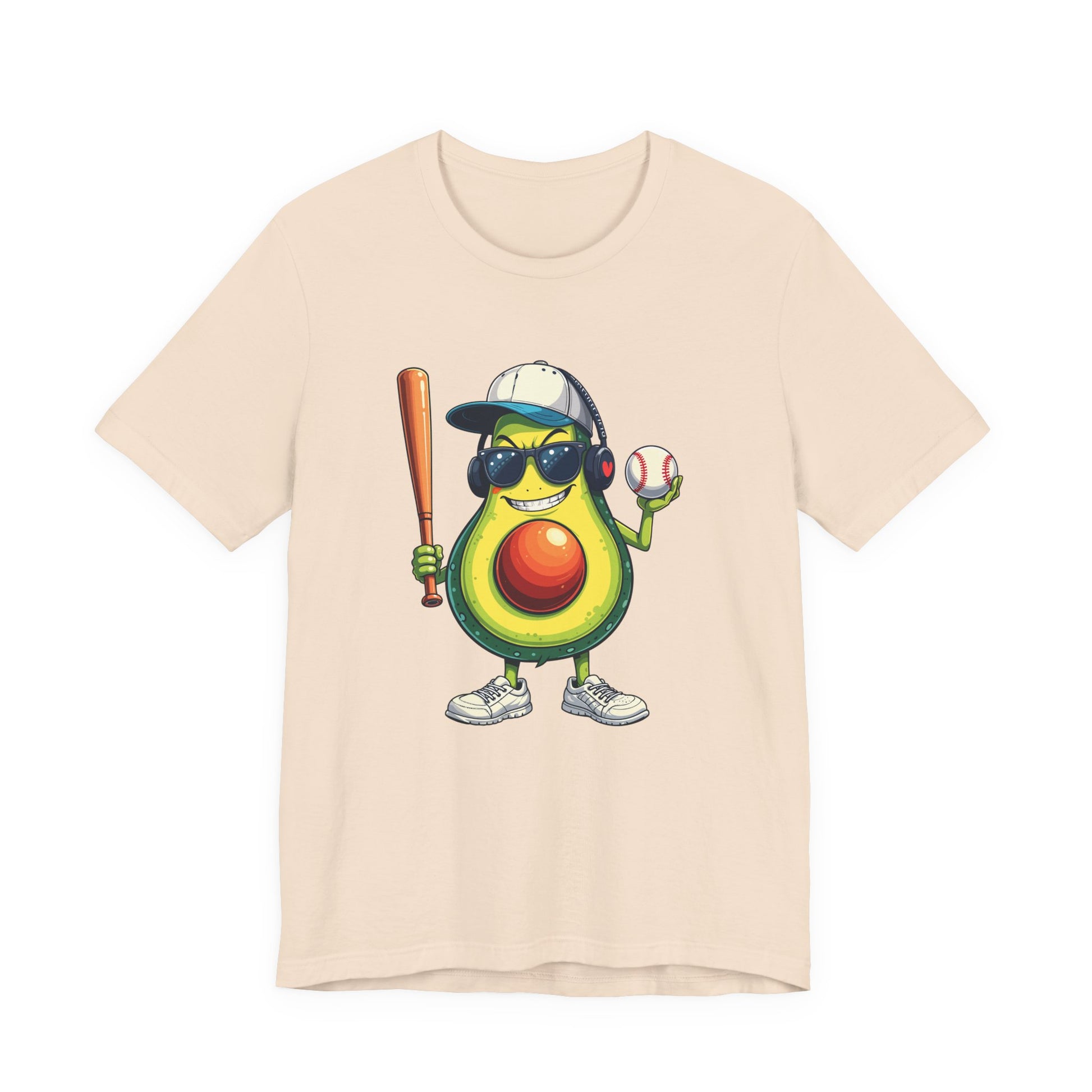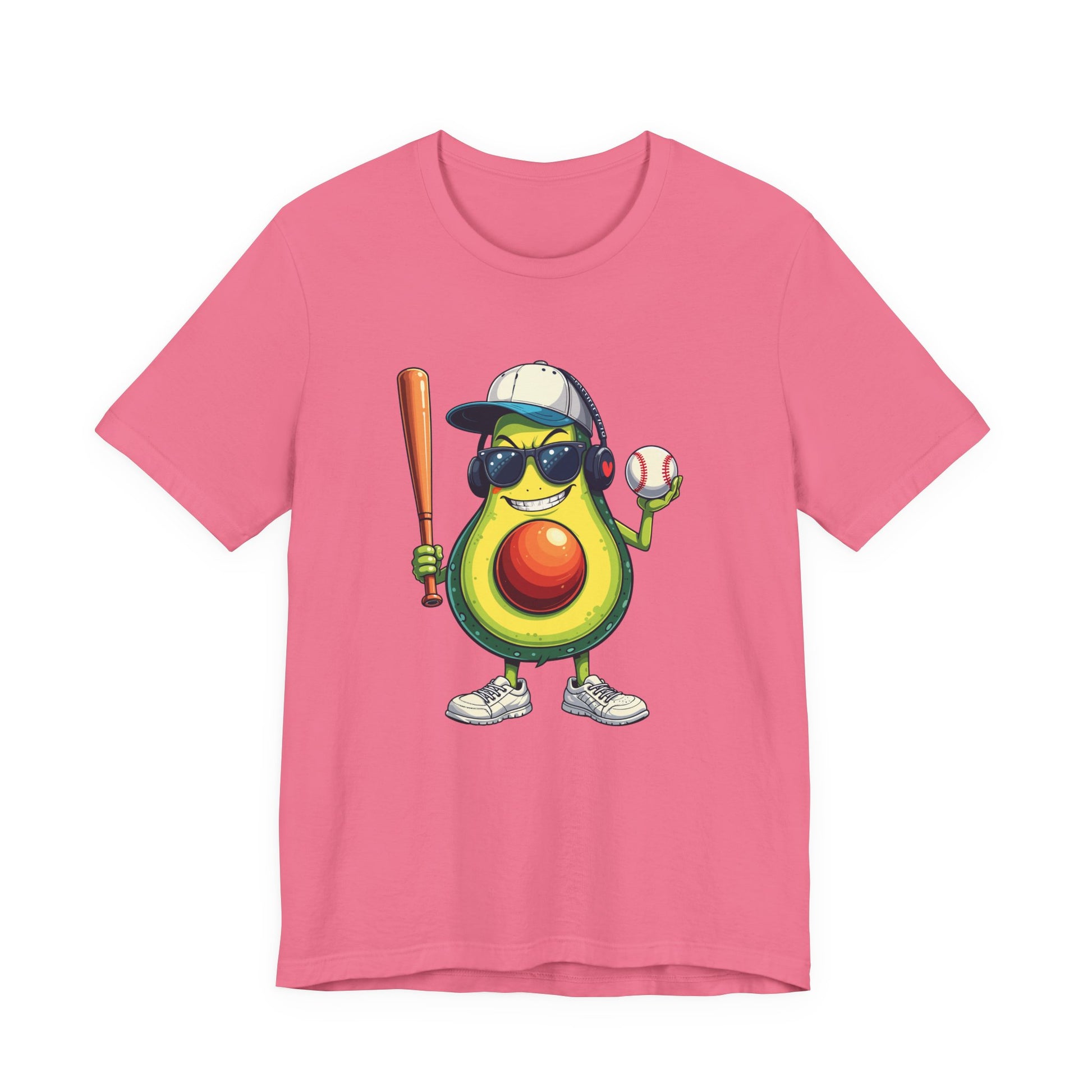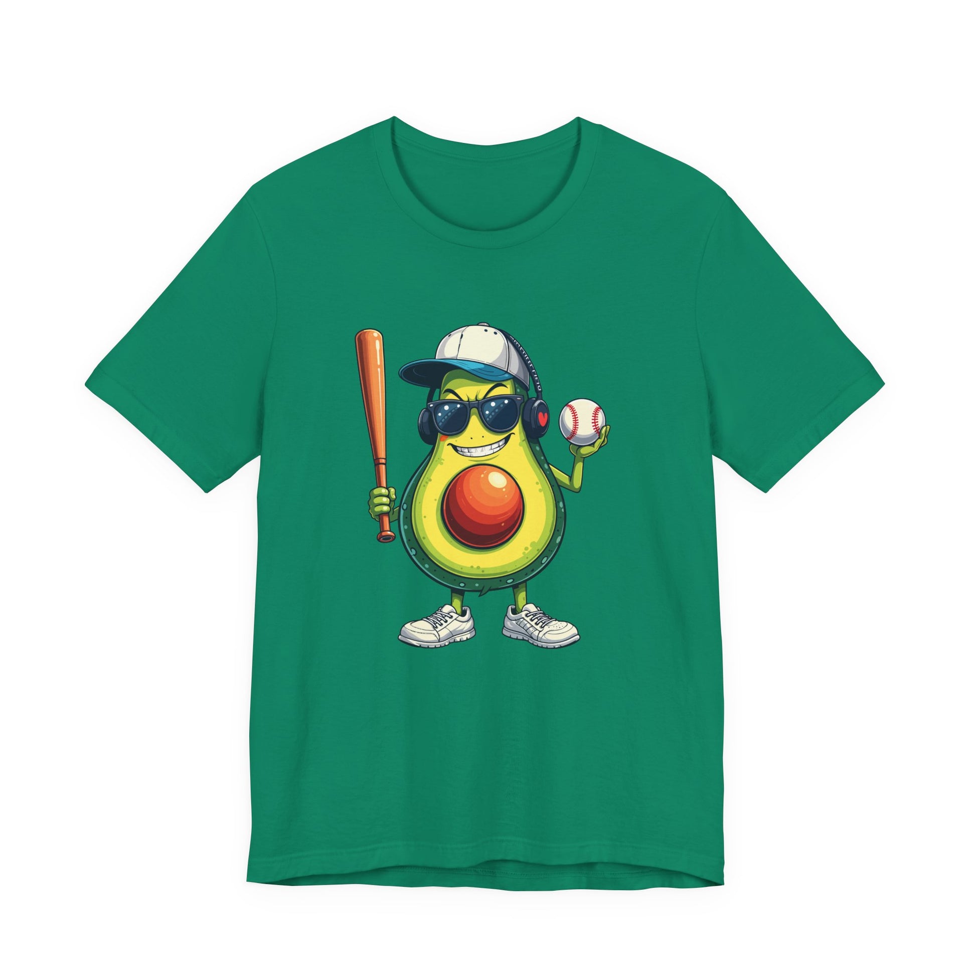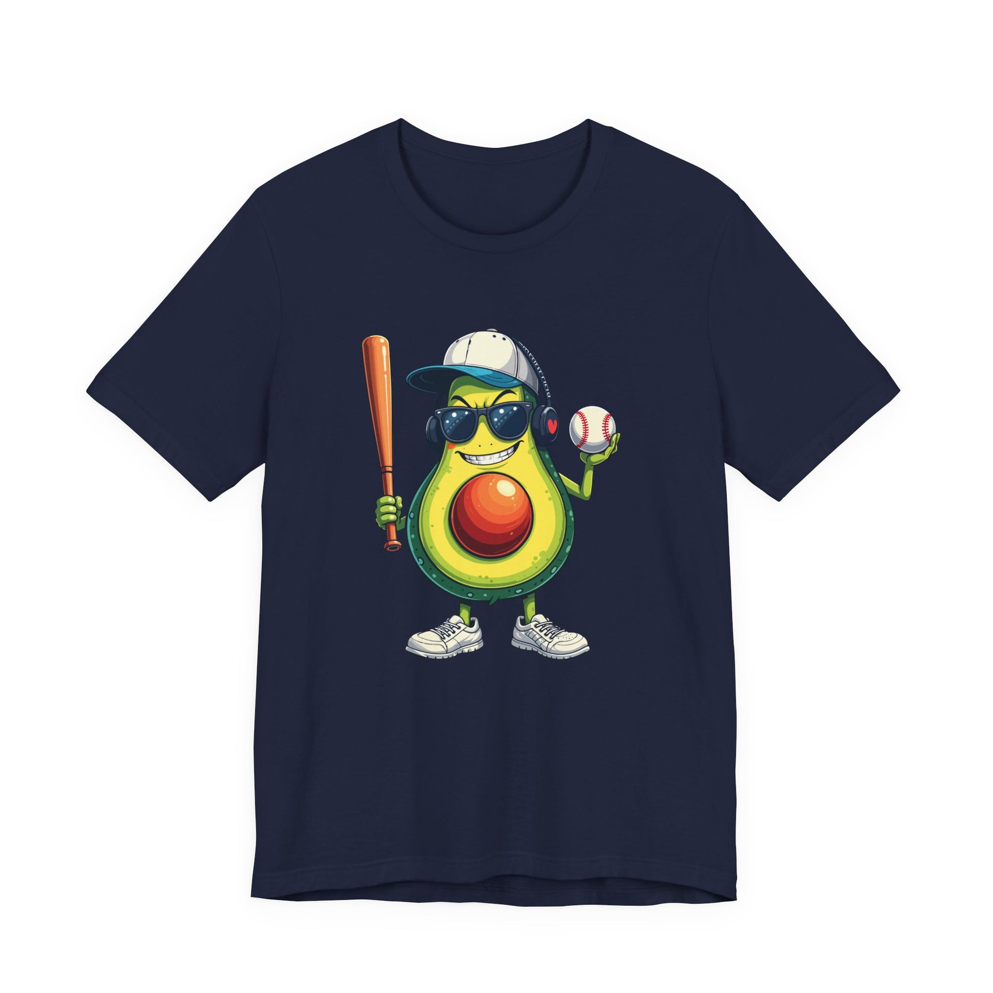 Add a fierce twist to your wardrobe with this vibrant tshirt featuring an aggressive avocado character standing on legs, decked out in stylish black glasses, a cap, headphones, and sneakers. Holding a baseball bat and ball with a determined, competitive expression, this design blends playful fruit charm with the strong attitude of baseball. Perfect for sports fans, avocado lovers, and those who enjoy unique, quirky graphics, this soft and comfortable tee is ideal for game days, casual wear, or as a fun and memorable gift for baseball enthusiasts.