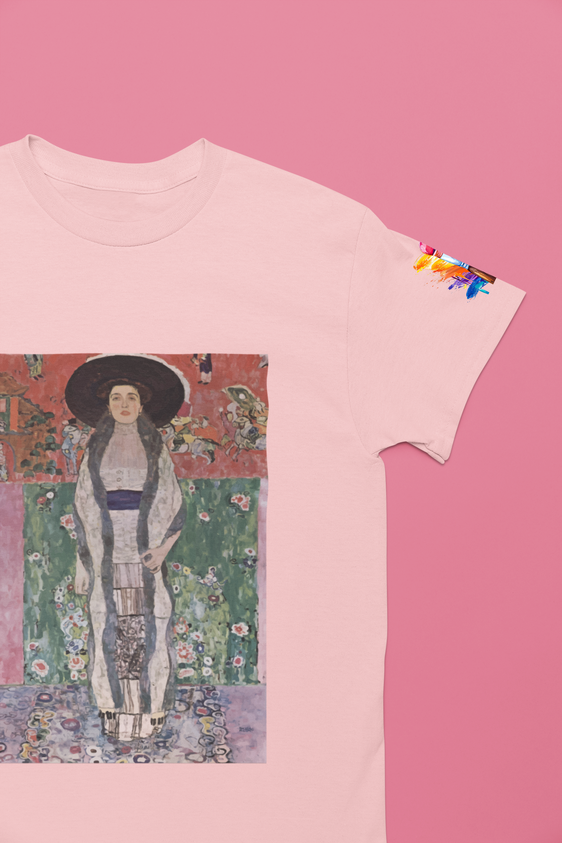 Experience the decorative splendor of the Art Nouveau movement with this breathtaking portrait t-shirt. This design features an elegant woman in an ornate, kimono-inspired dress adorned with intricate floral patterns and geometric designs. The composition showcases the Art Nouveau hallmarks of flowing lines, natural motifs, rich colors, and the influence of Japanese aesthetics that captivated European artists at the turn of the 20th century.
