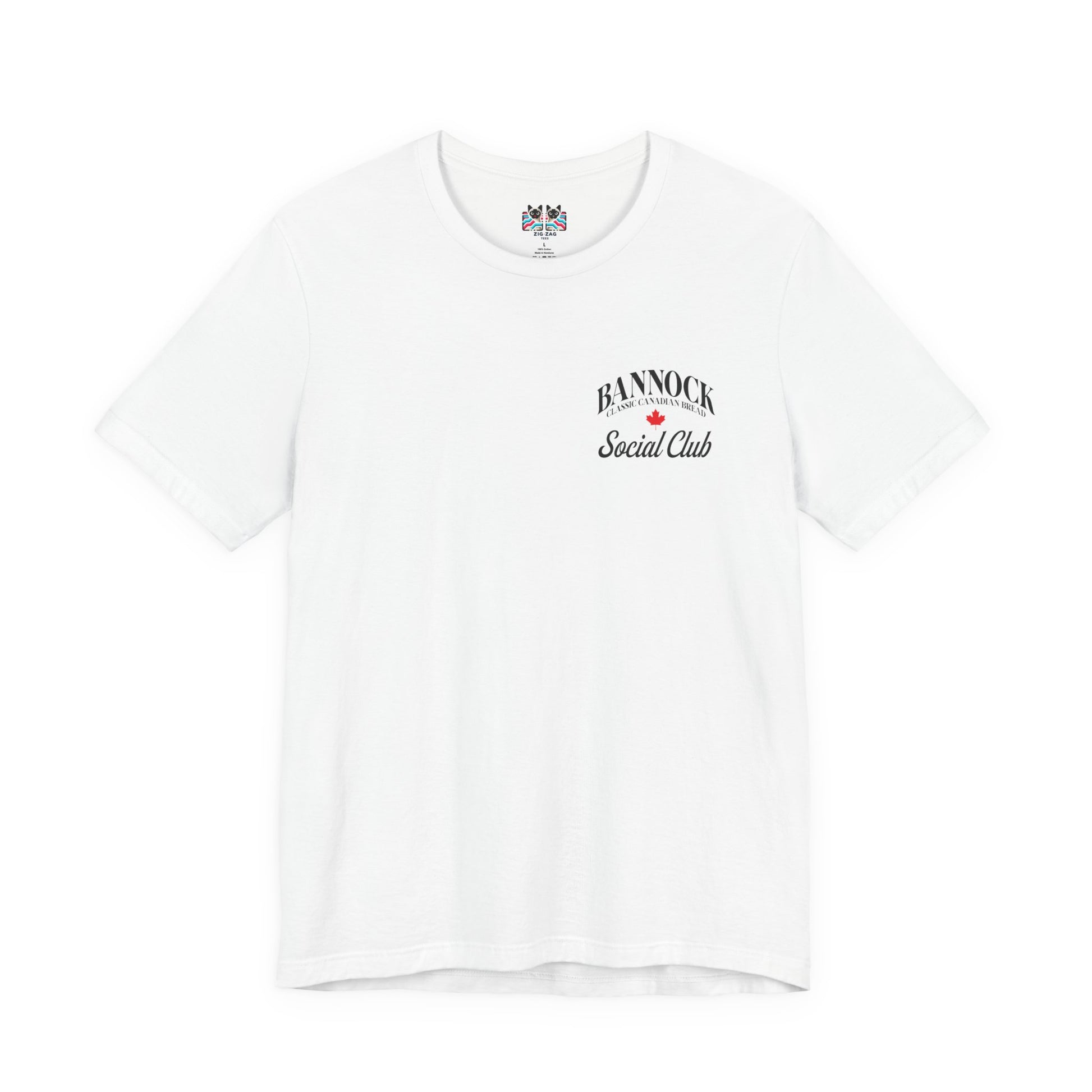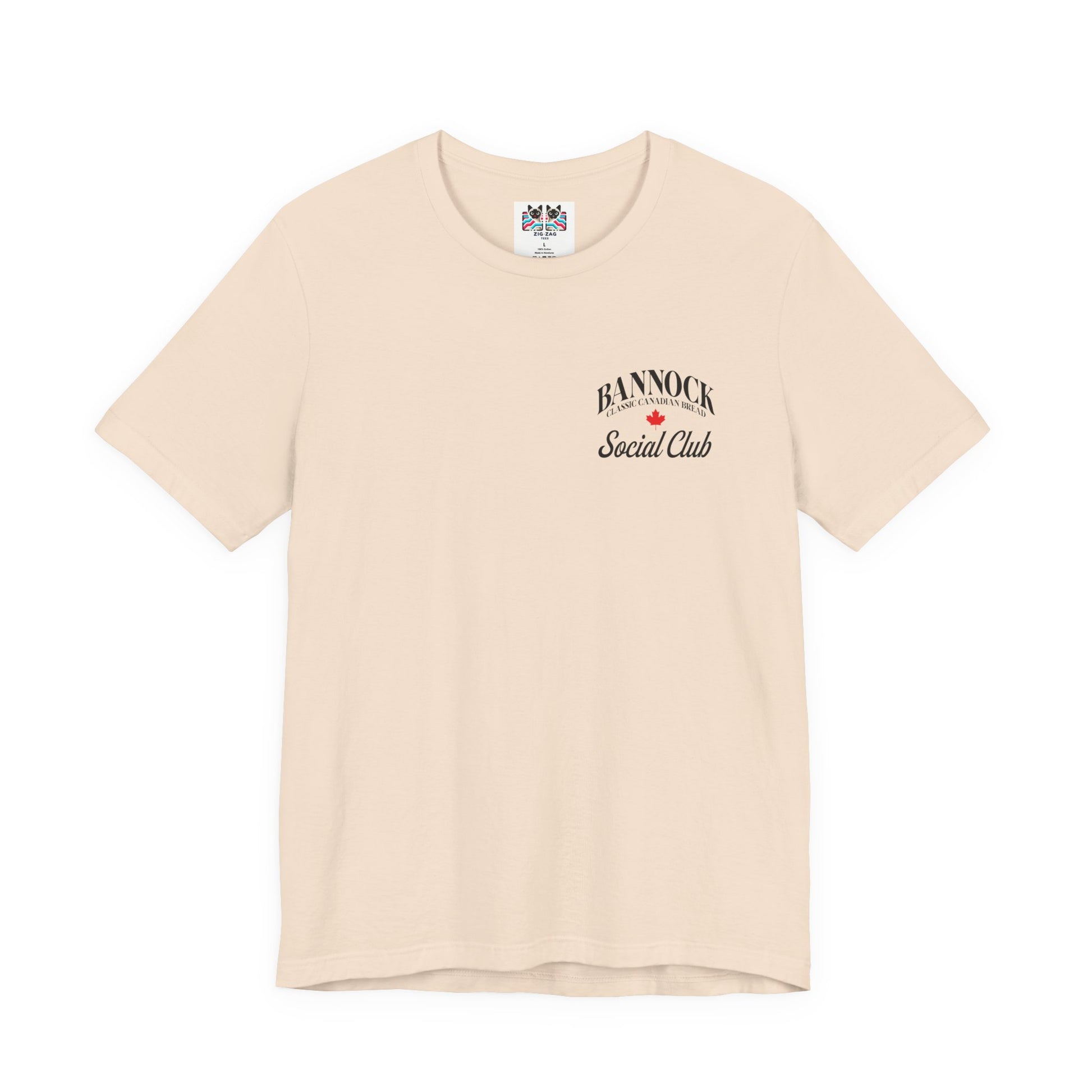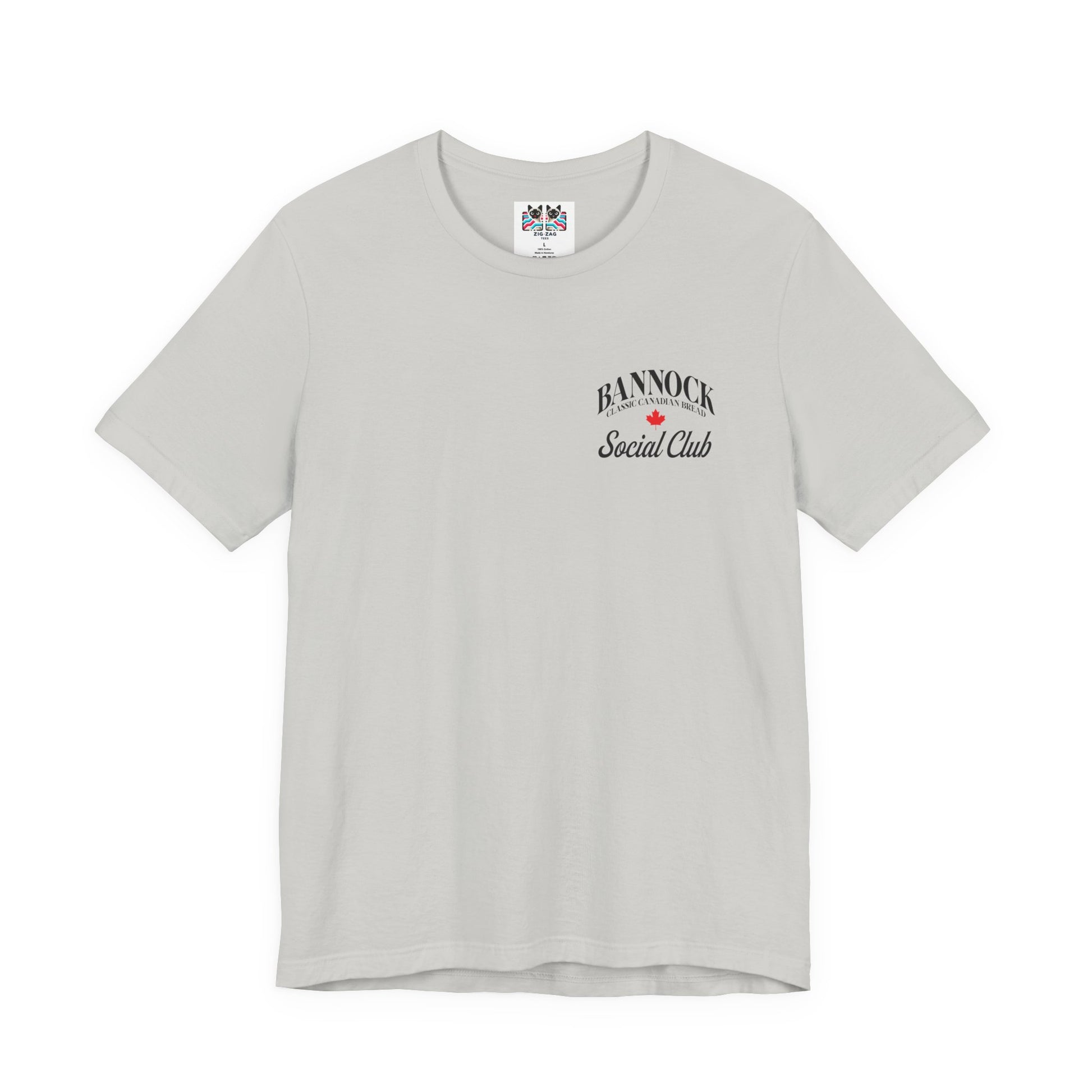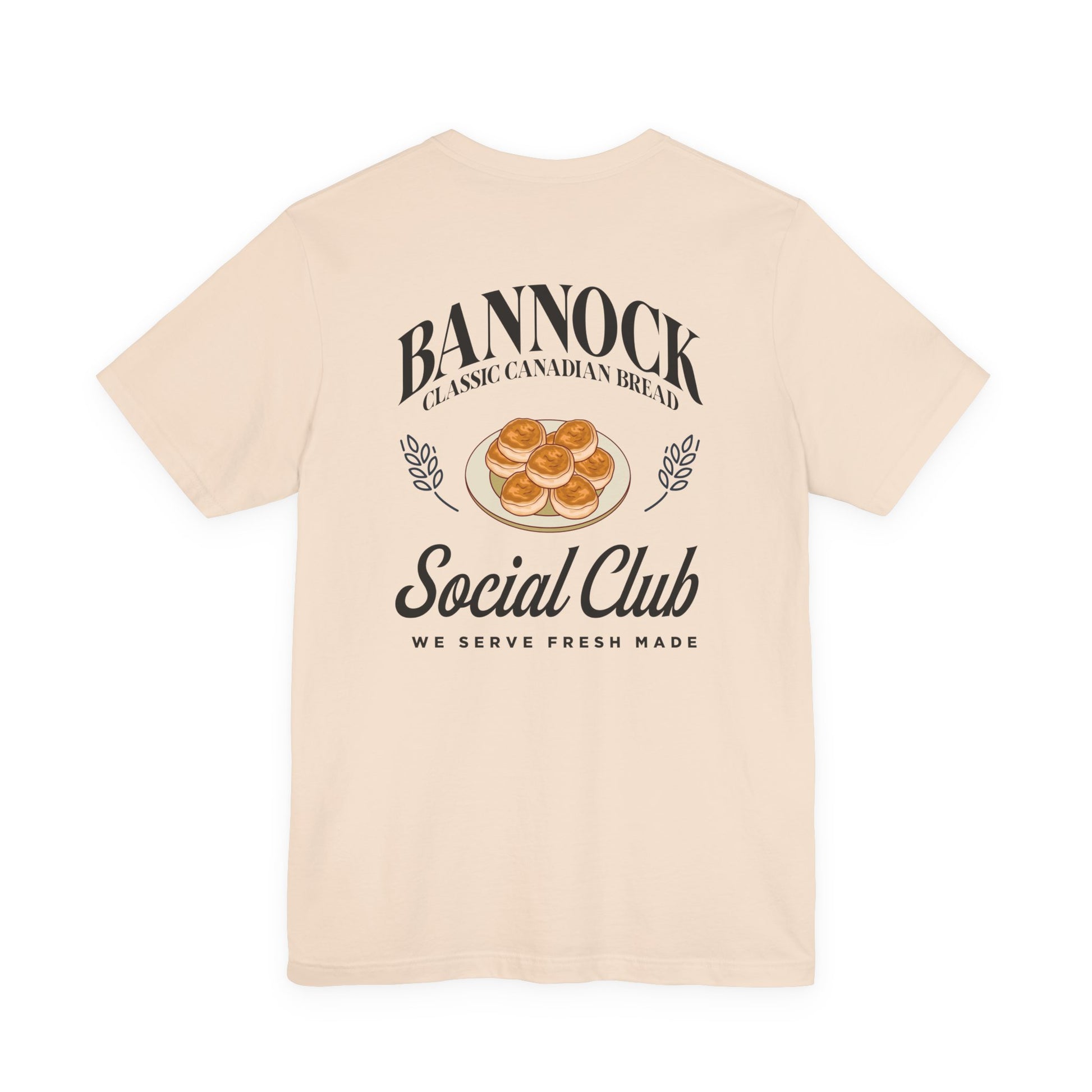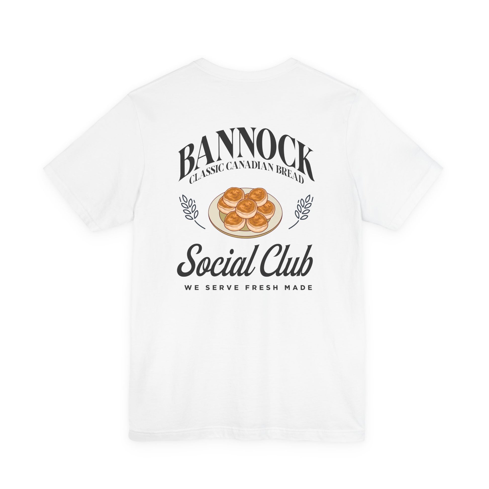 Show your love for a true Canadian staple with this unique tshirt featuring a graphic of Bannock, the classic Canadian bread served fresh on a plate. The design highlights this simple yet soulful bread made from basic ingredients like flour, baking powder, and oil. On top, bold text declares "Bannock Classic Canadian Bread," while "Social Club" is featured prominently at the bottom. Ideal for fans of Canadian heritage foods, indigenous cuisine, and traditional baking.