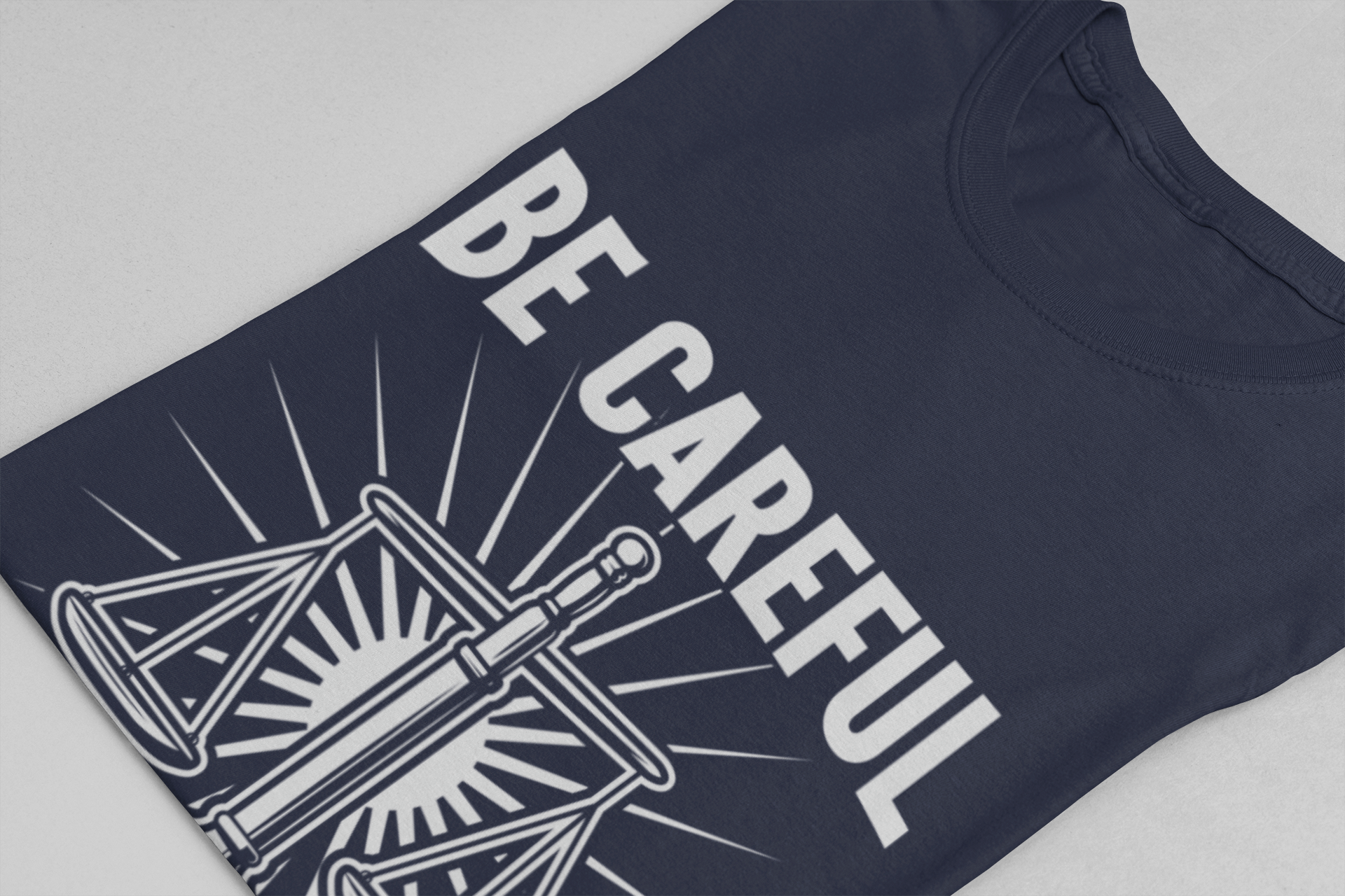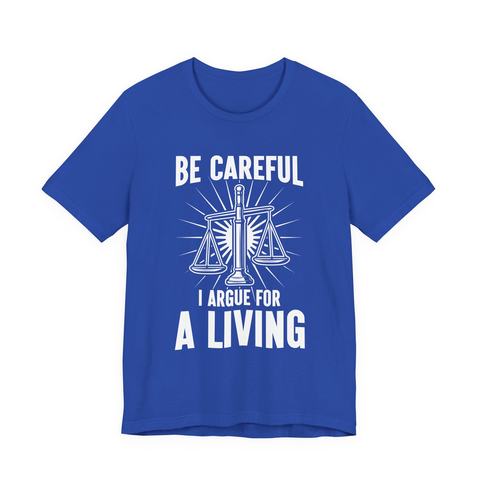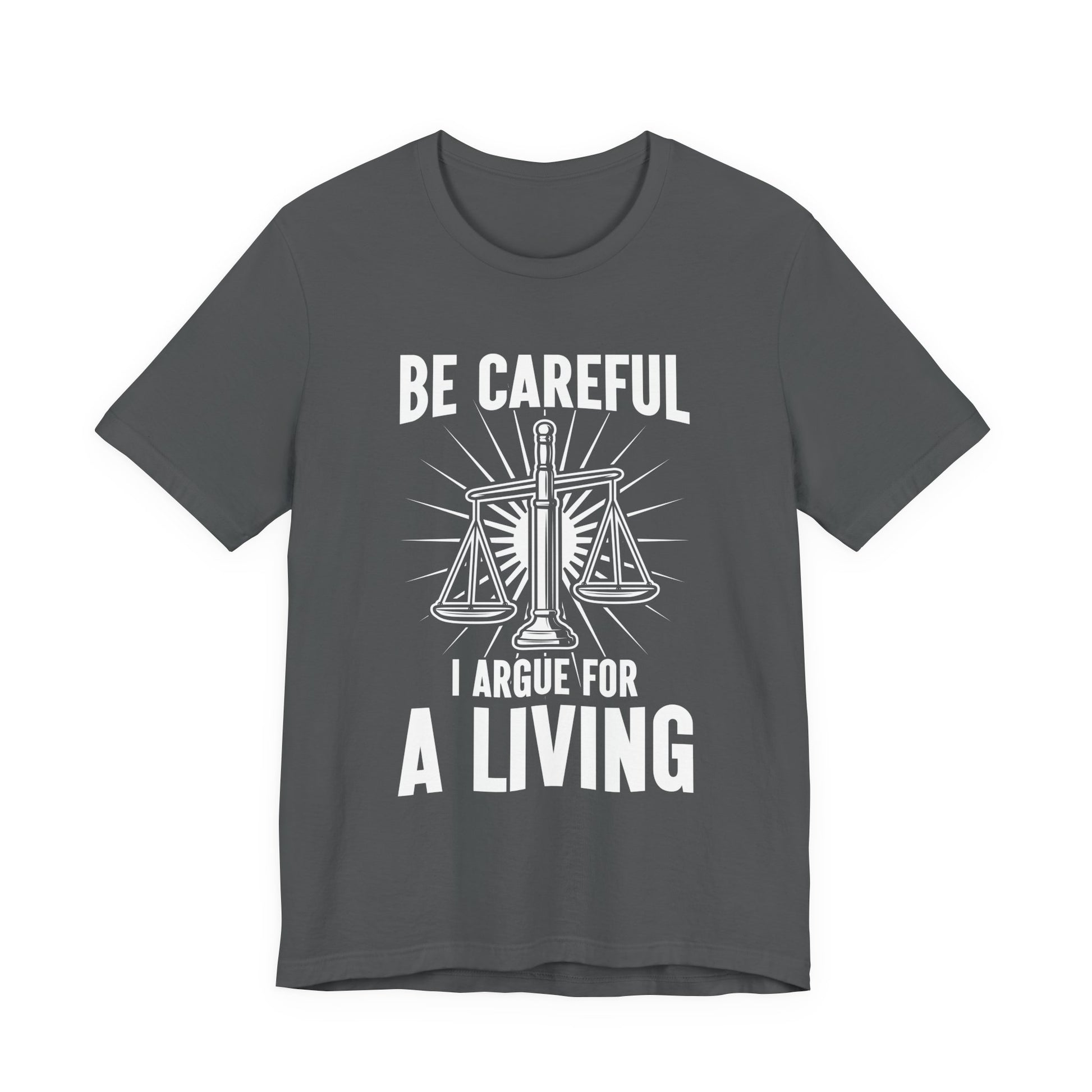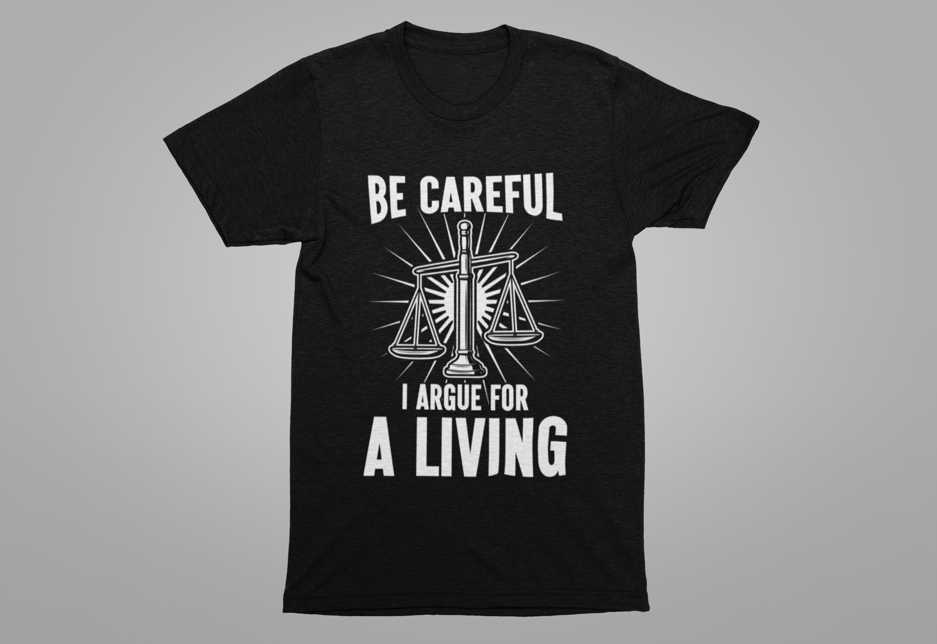 Show off your debate skills and sharp wit with this striking T-shirt! Featuring a balance scale illuminated by a flashlight and the bold text “Be Careful I Argue for a Living,” this tee is perfect for lawyers, law students, debaters, or anyone who knows their way around an argument. Makes a great gift for legal pros and outspoken personalities who love to keep things balanced and bright.