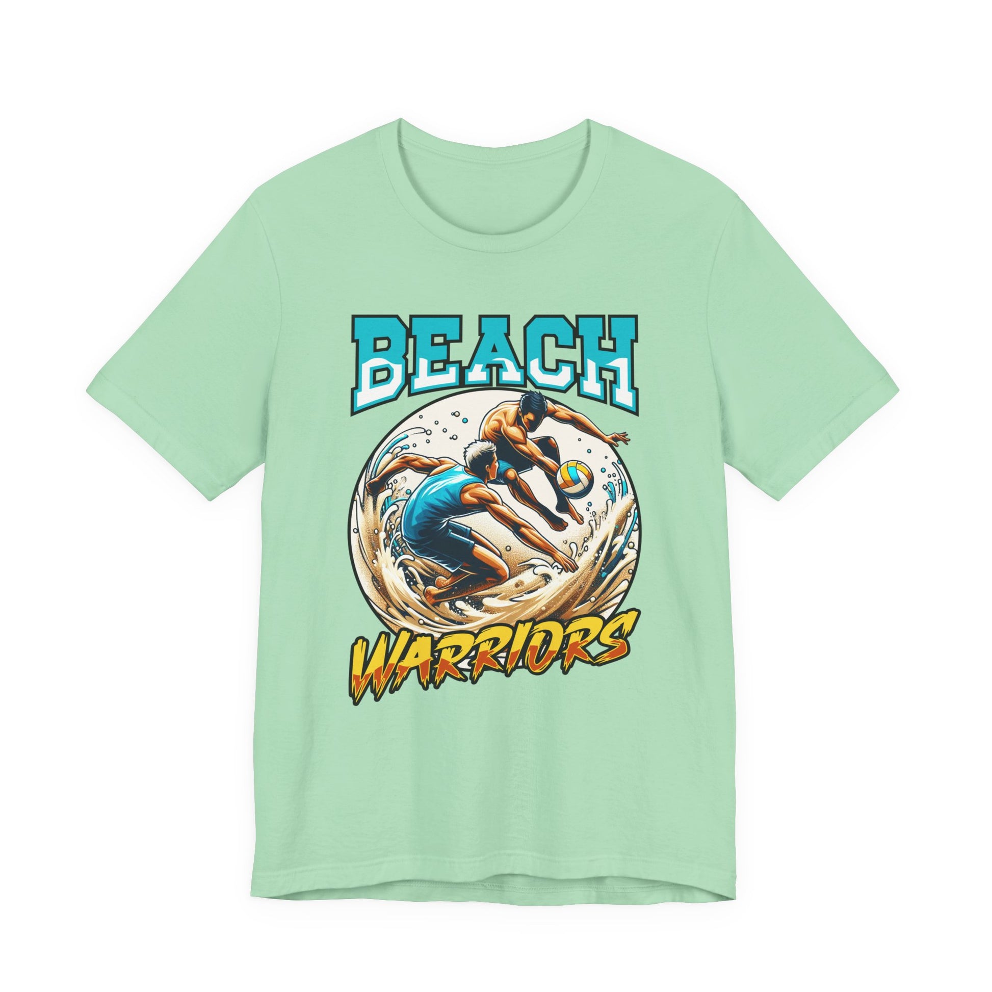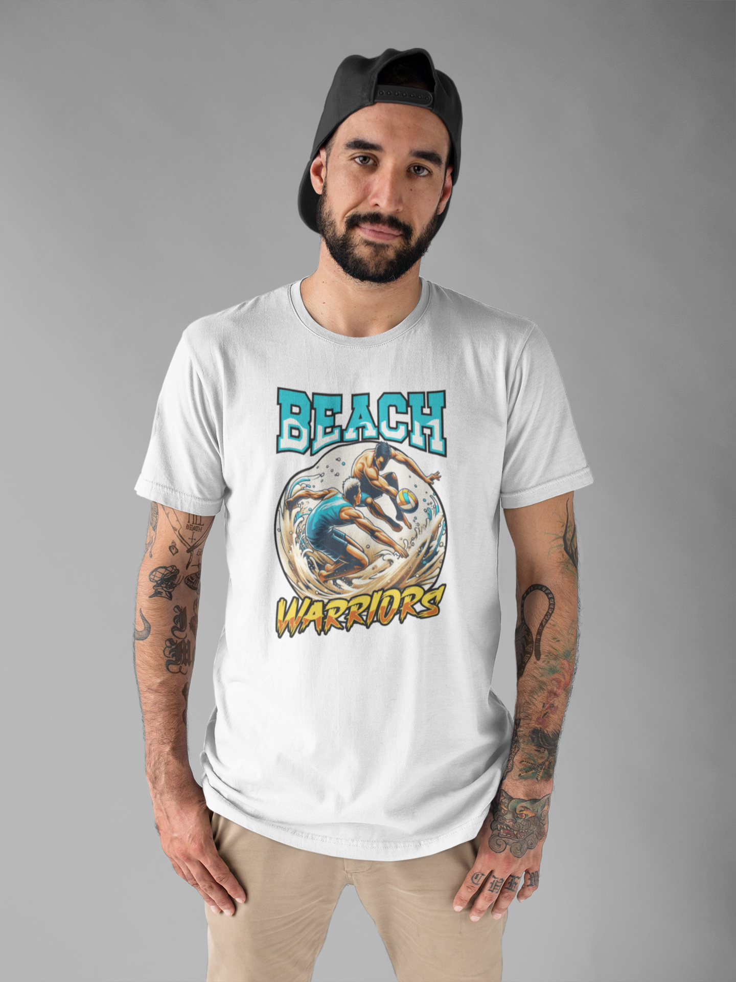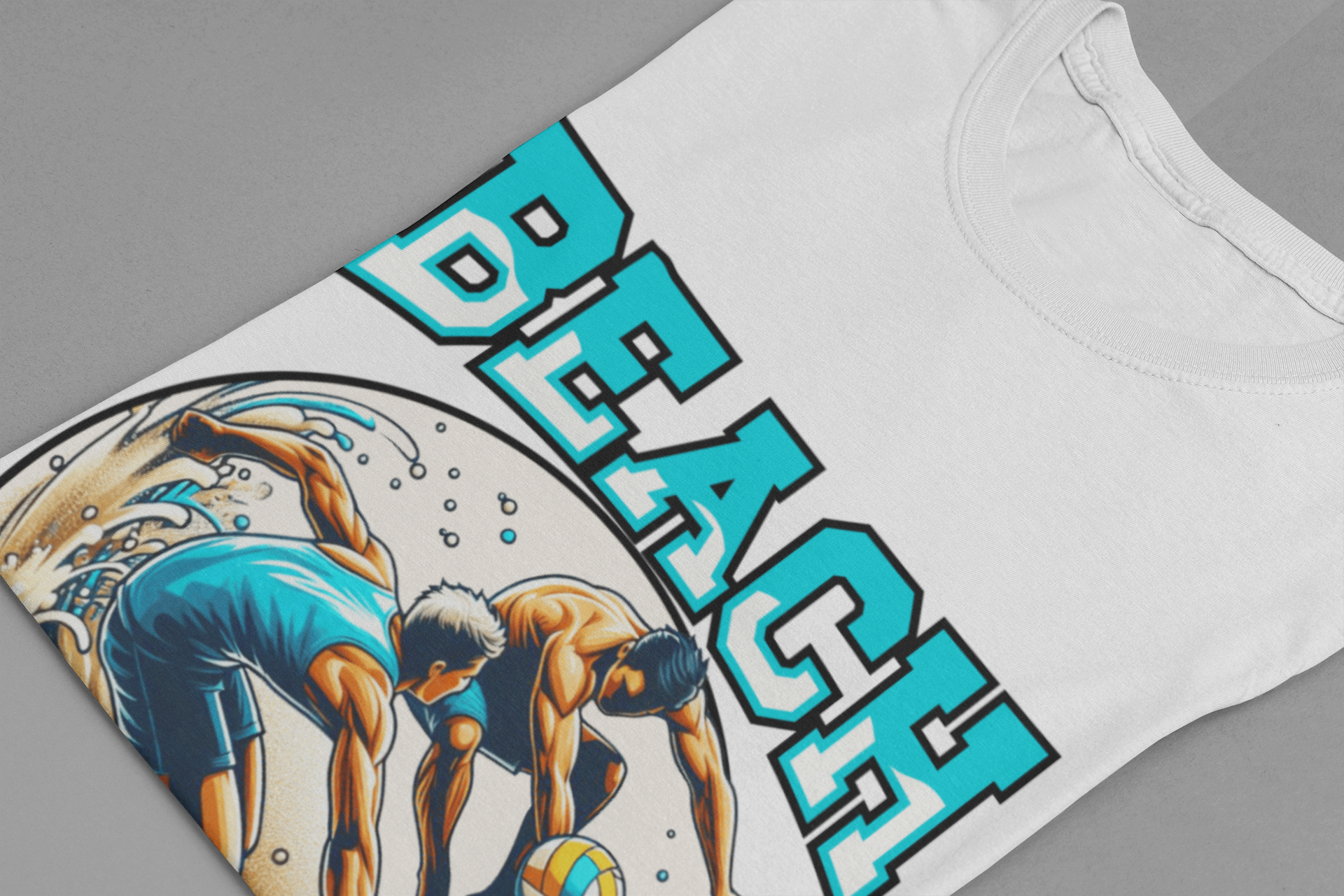 Embrace the thrill of the sand court with this "Beach Warriors" t-shirt! Featuring a vibrant graphic of two beach ball players facing off on opposite teams, with sand and ocean waves flowing between them, this design captures the energy and excitement of a true sand court battle. Perfect for beach sports enthusiasts, volleyball fans, or anyone who loves the sun, surf, and competitive spirit. Made from soft, comfortable fabric, this tee is ideal for game days, beach outings, or showing off your love for beach sports and summer adventures.