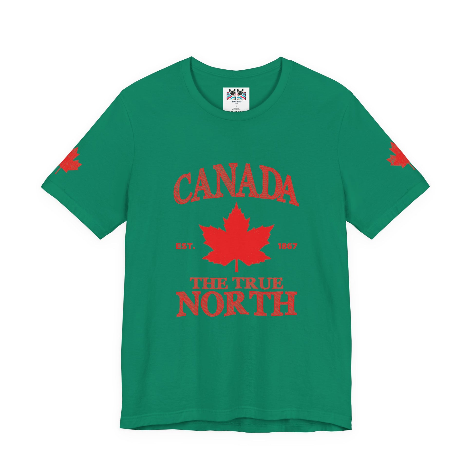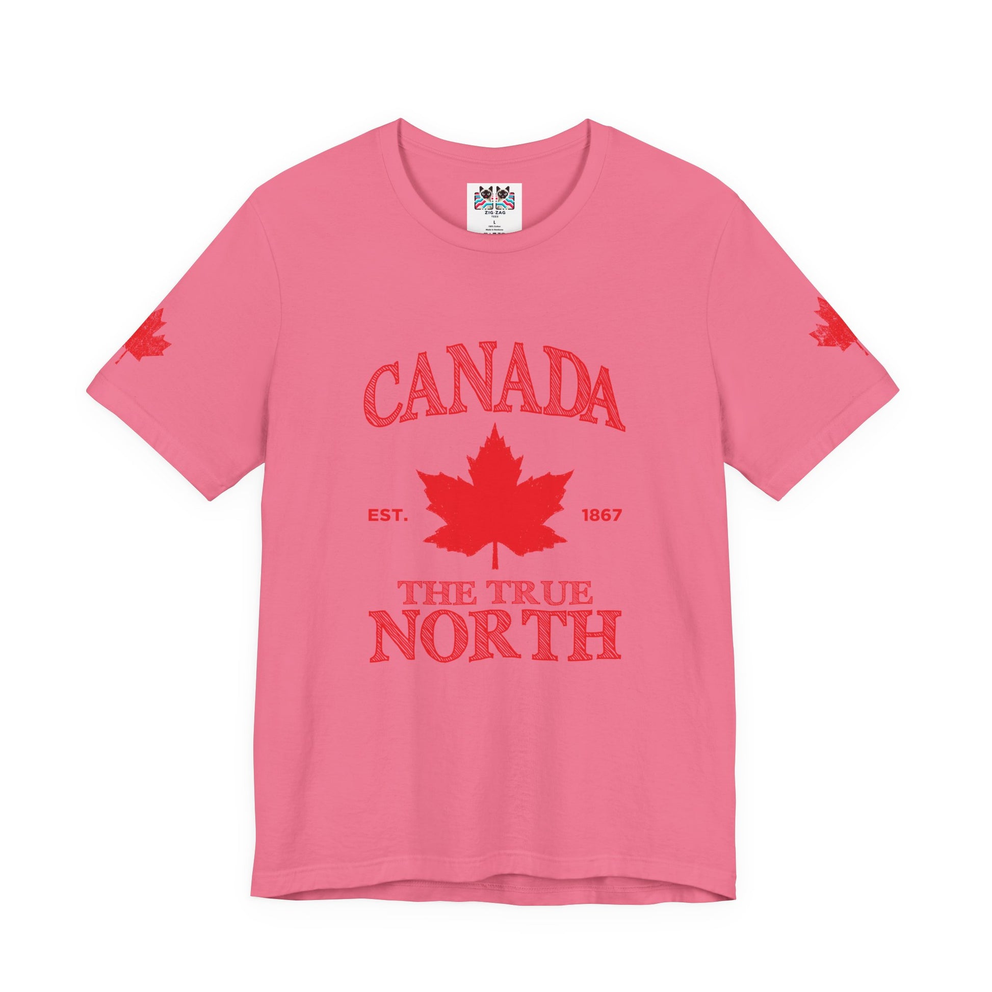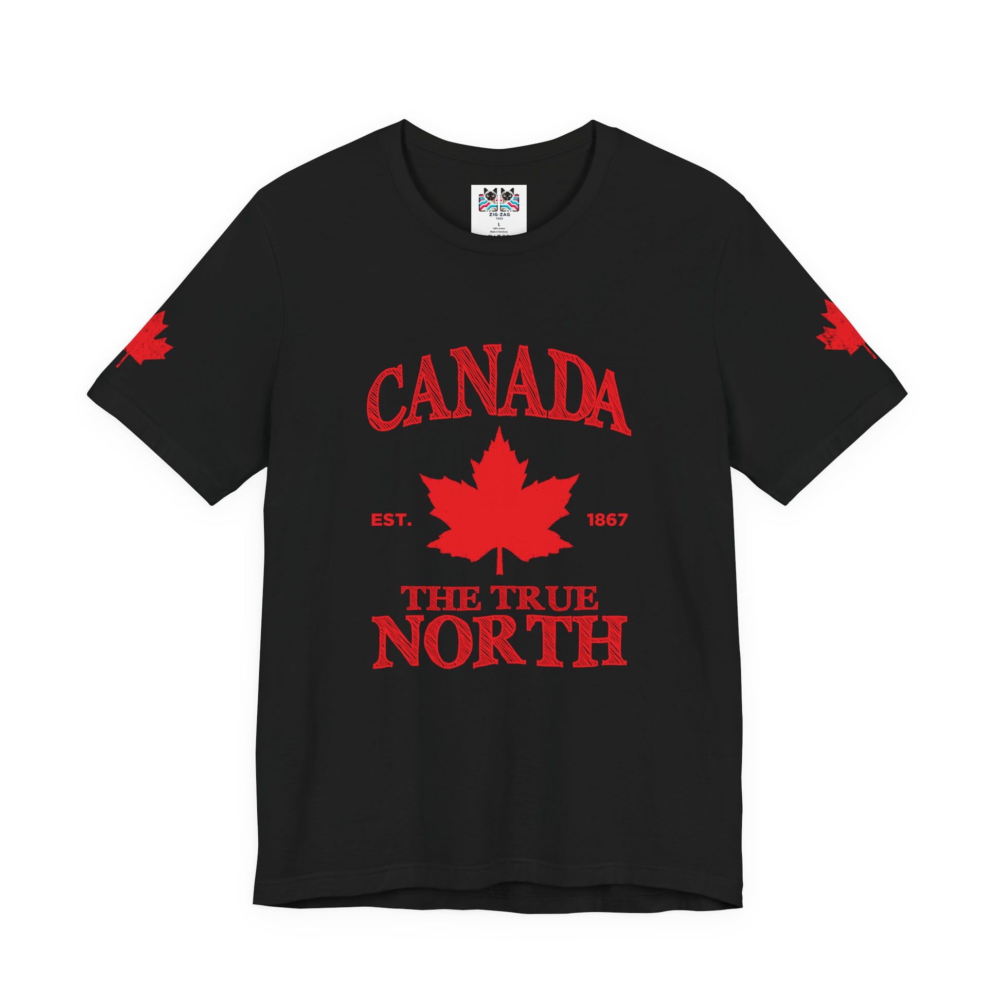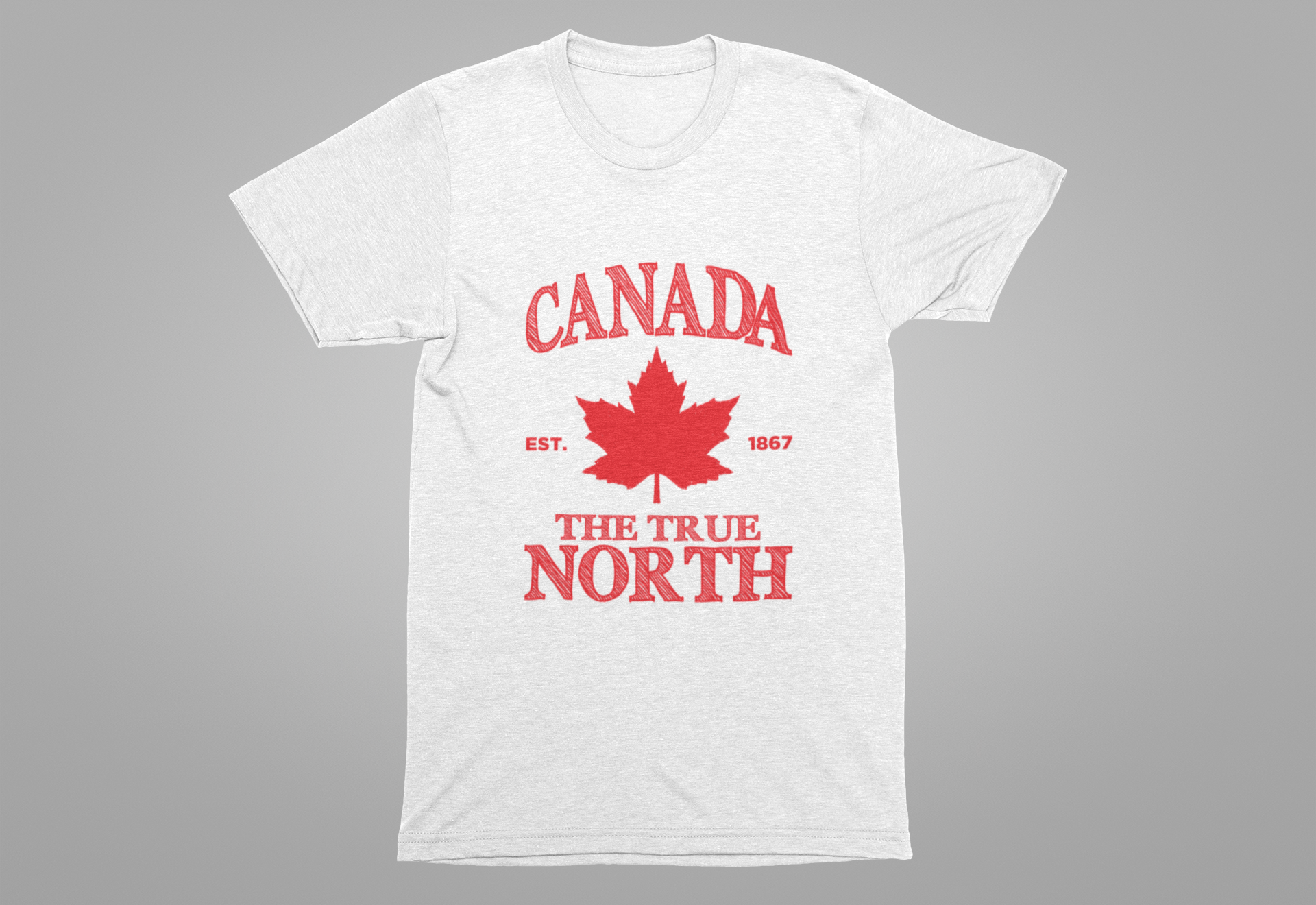 Celebrate Canadian heritage with this standout t-shirt featuring a large red maple leaf sketched boldly at the center. “CANADA” appears in prominent sketch-style text across the top, while “THE TRUE NORTH, EST. 1867” is highlighted at the bottom, all in a hand-drawn pattern for a modern, artistic look. Perfect for Canada Day, national events, or everyday wear, this comfortable tee offers a fresh take on classic patriotism and iconic design.