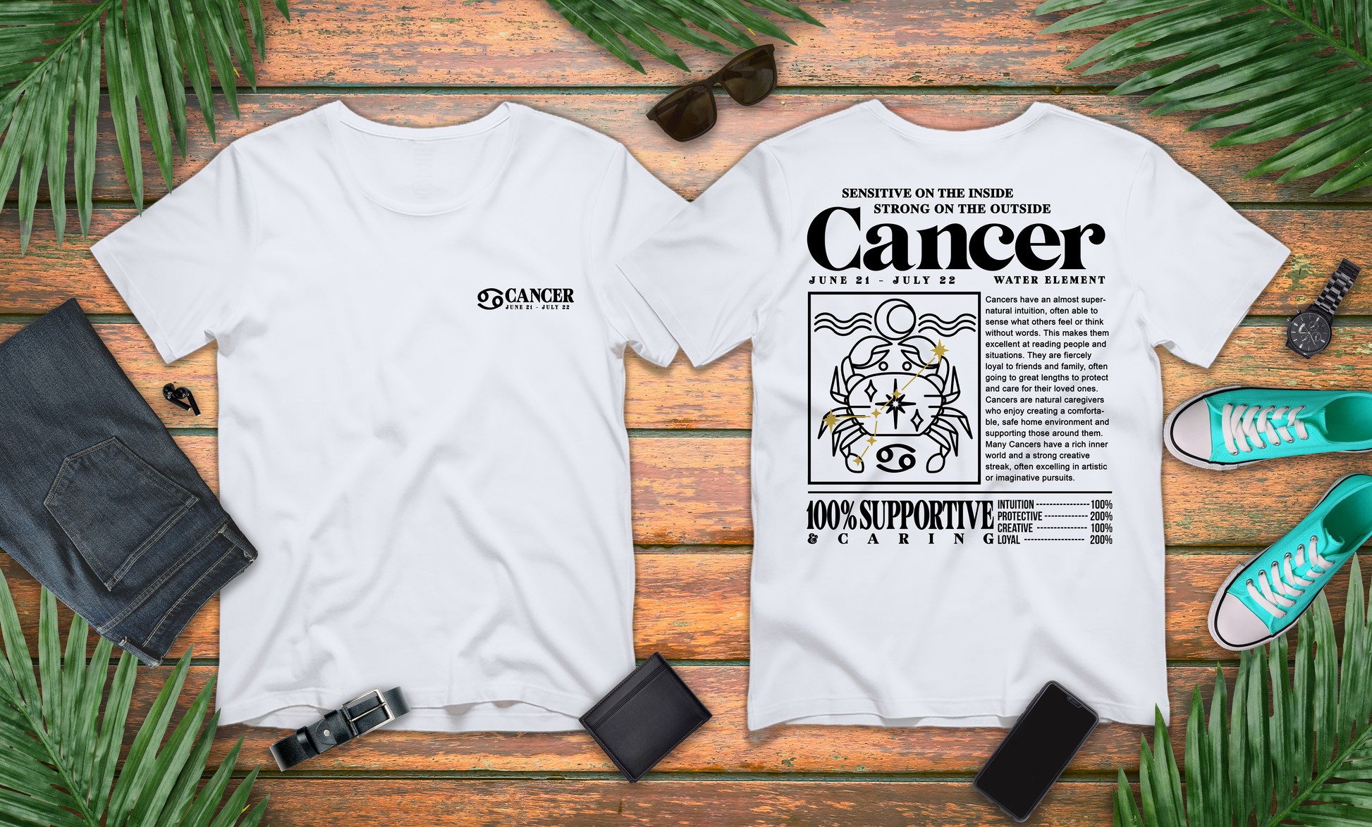 Cancer Zodiac T-Shirt – Sensitive Inside, Strong Outside with Water Element