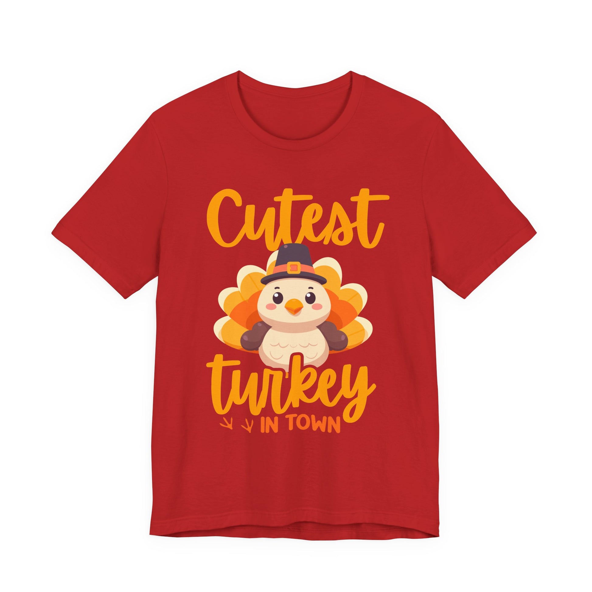 Charm your way through the holiday season with this adorable “Cutest Turkey in Town” t-shirt featuring a large baby turkey wearing a hat, spreading its tiny feathers, and making cheerful noise. Perfect for Thanksgiving celebrations, fall festivals, or as a cute statement piece for kids and adults alike, this playful design adds a lighthearted touch to festive outfits. Made from soft, breathable fabric, it’s comfortable for all-day wear and ideal for gifting.