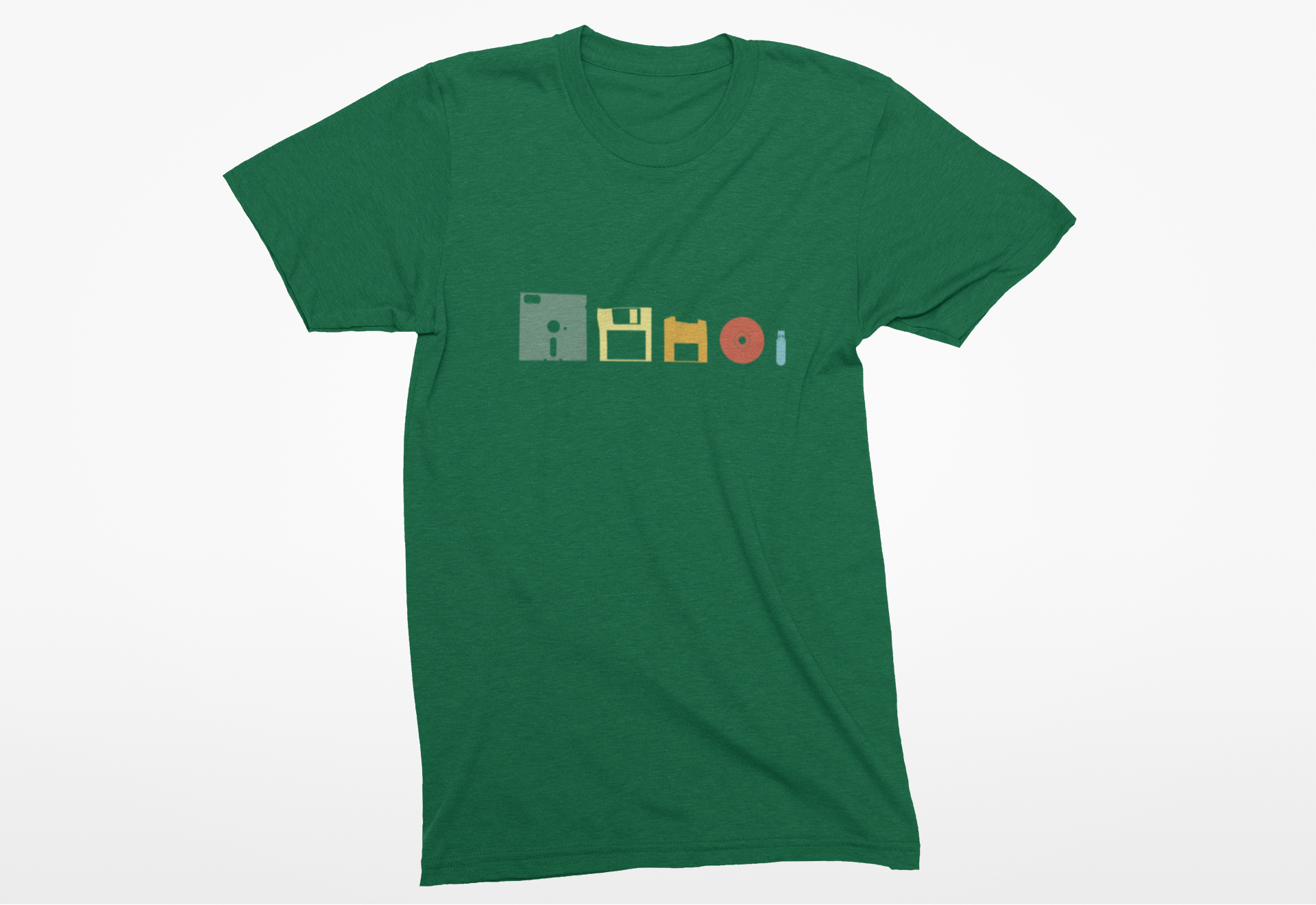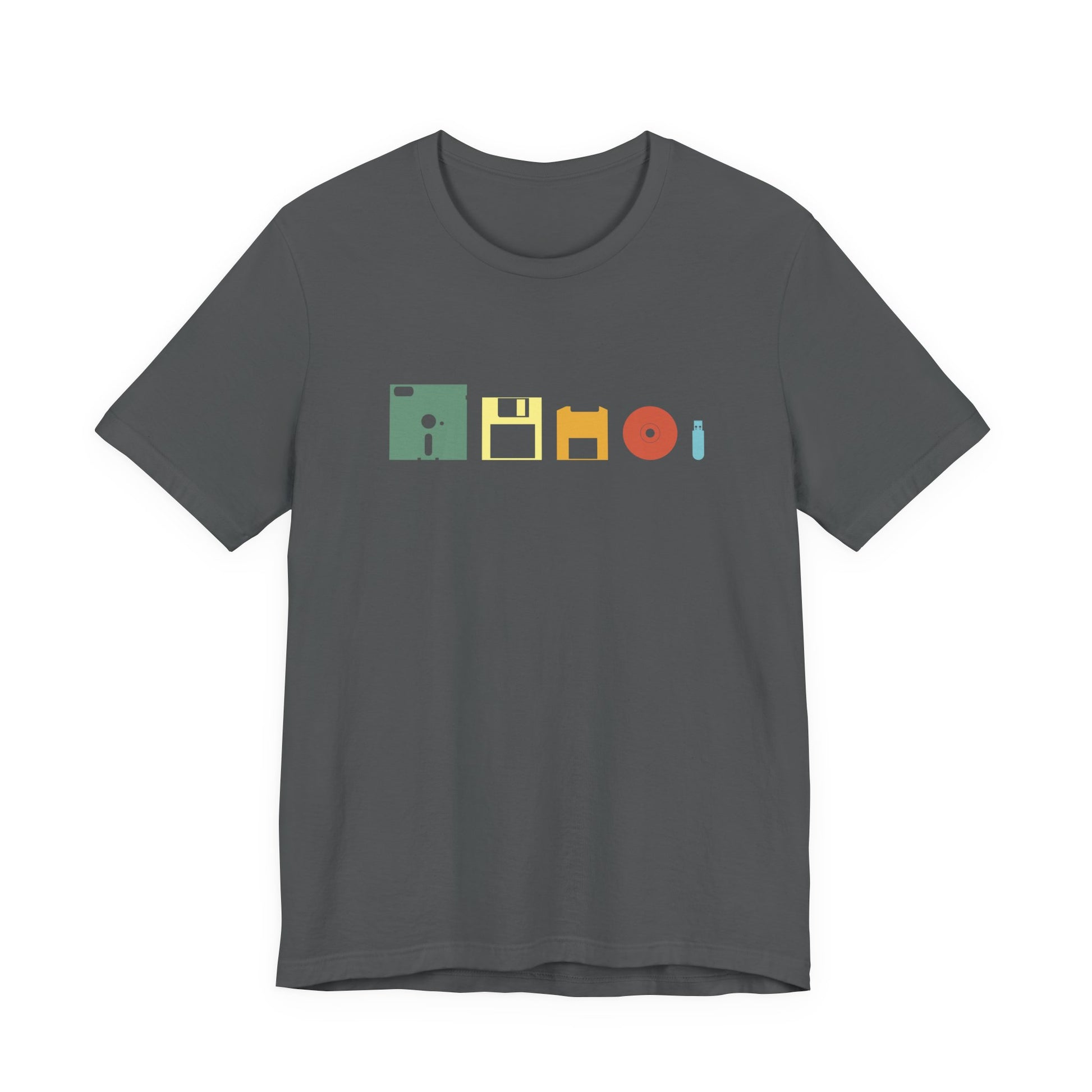 Data Storage Evolution Tshirt – Floppy Disk to CD to Thumb Drive