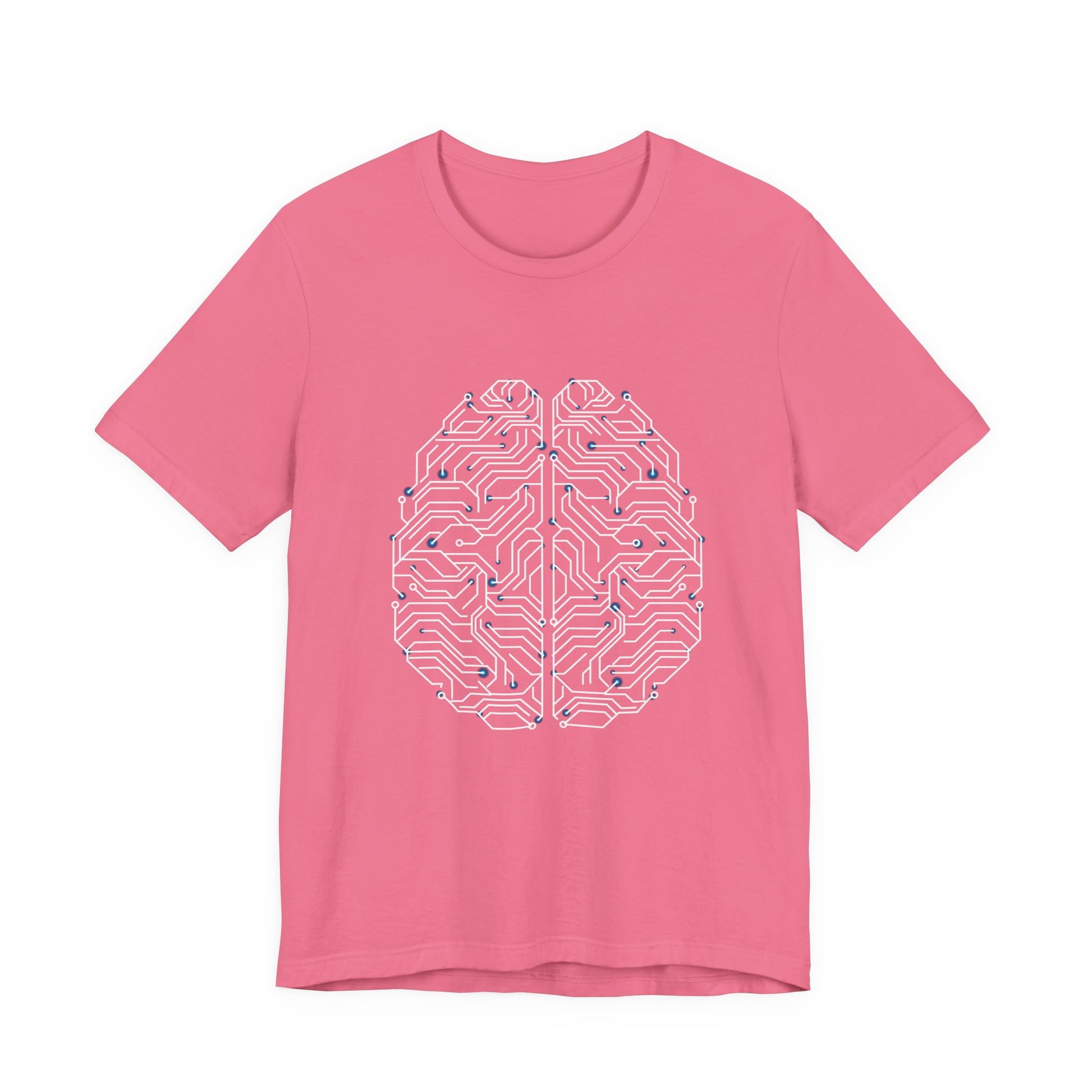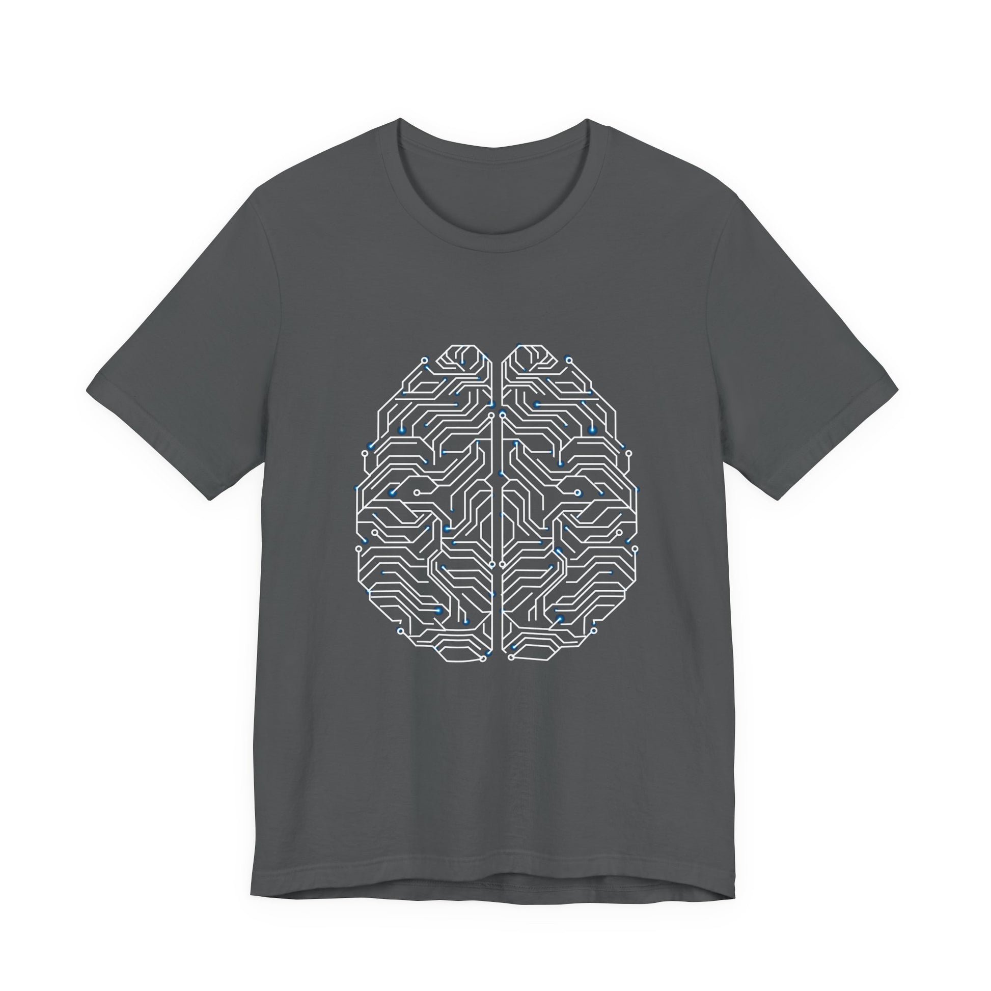 This stylish tshirt features a large human brain shape formed by interconnected lines and nodes resembling a circuit diagram. The design symbolizes the brain’s complex neural network and modern technology’s digital circuits, making it ideal for tech enthusiasts, engineers, neuroscientists, and anyone fascinated by the fusion of science and technology.