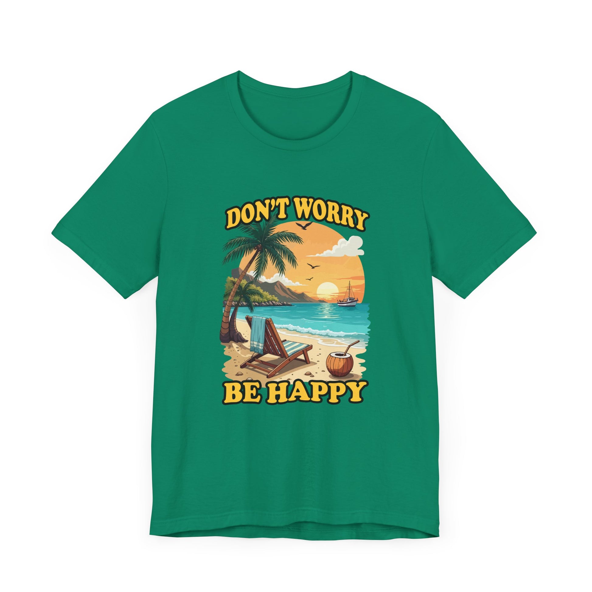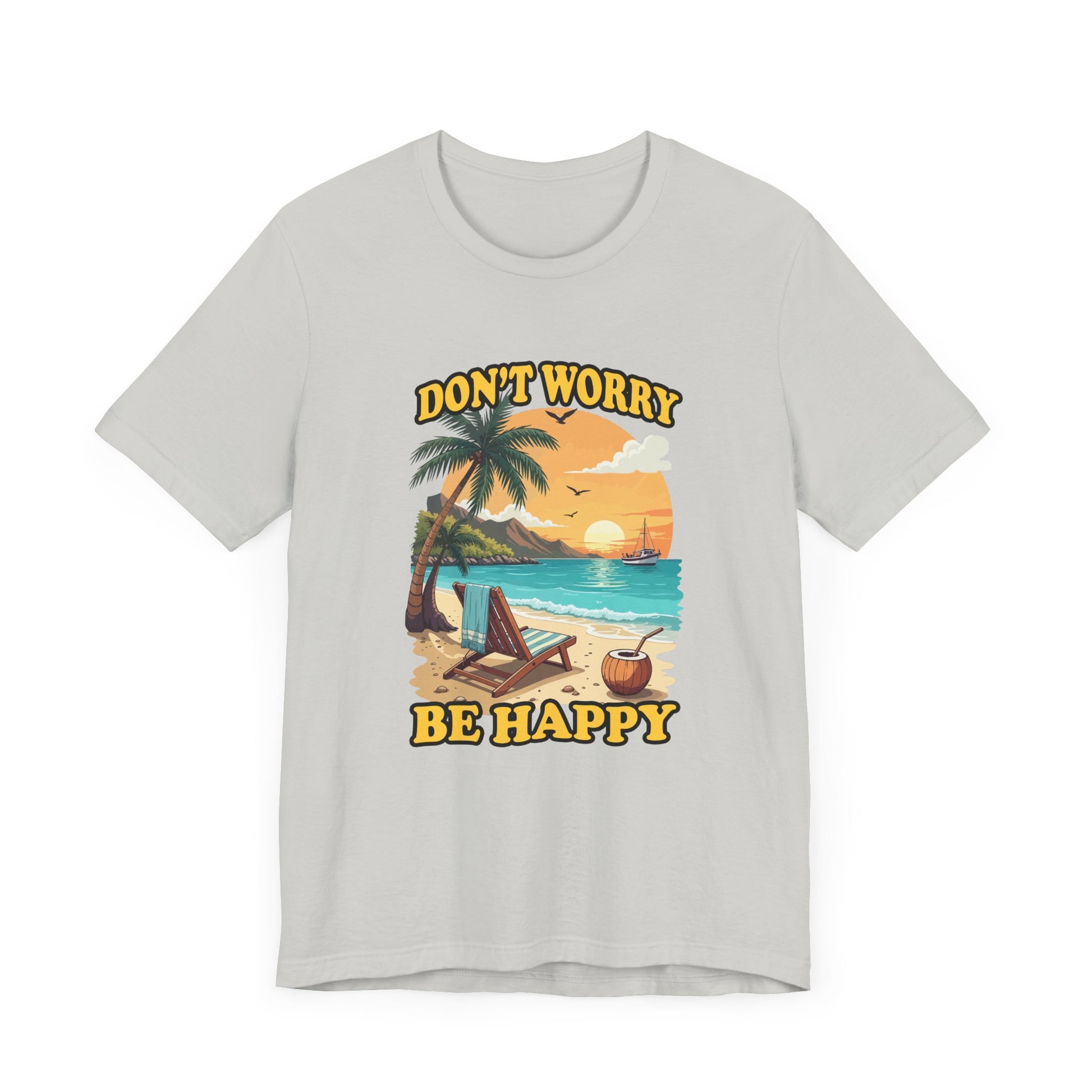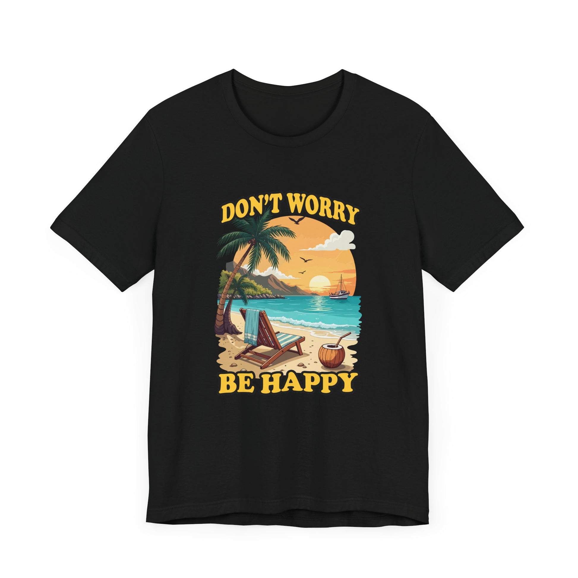 Don’t Worry Be Happy T-Shirt – Retro Beach Sunset Graphic Tee