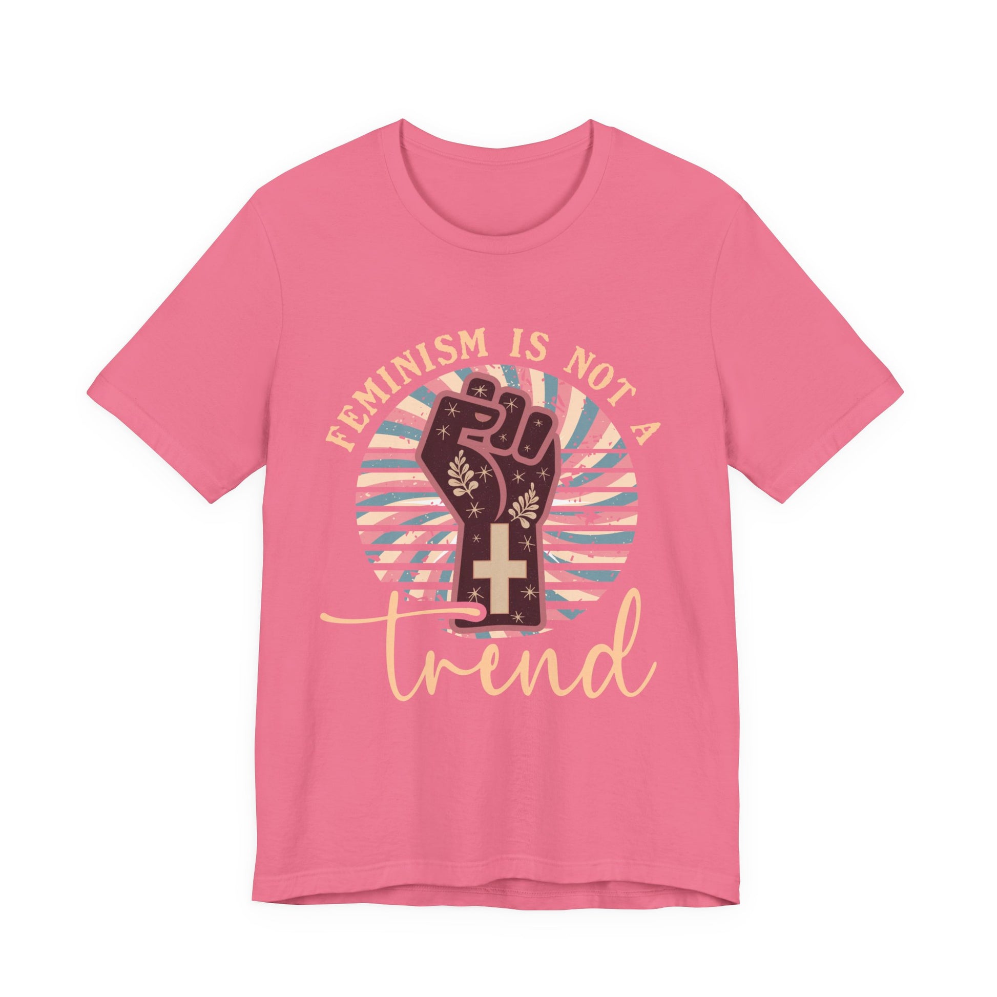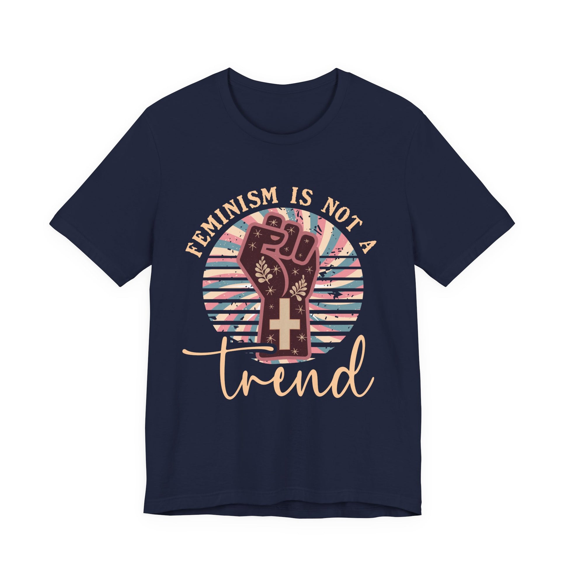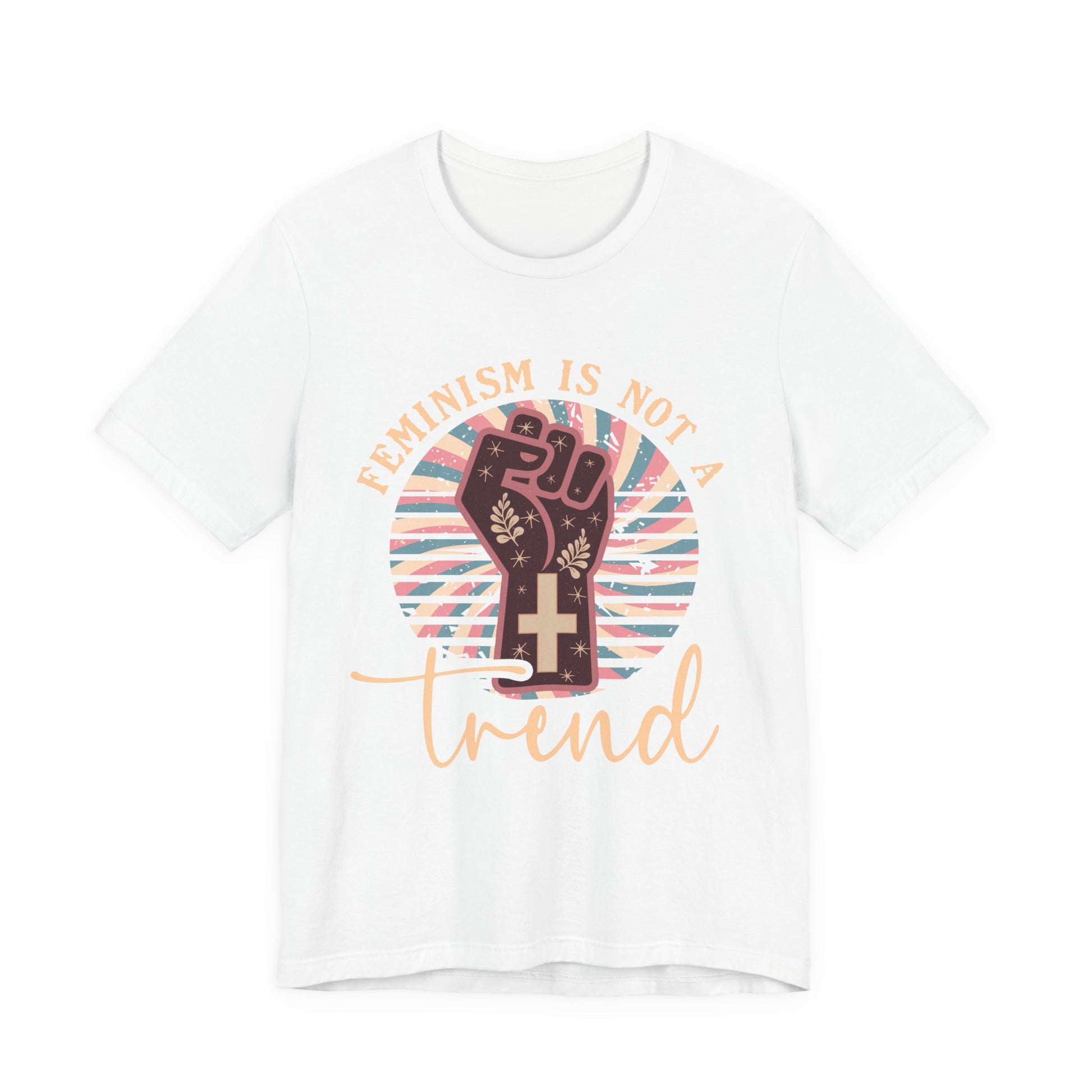 Make a powerful statement with this bold "Feminism Is Not a Trend" t-shirt, featuring a striking graphic of a raised power fist at its center—a timeless symbol of strength, unity, and resistance. This design emphasizes that feminism is a vital movement for equality and justice, not just a passing fad. Crafted from soft, high-quality fabric, this tee is perfect for activists, allies, and anyone proud to stand up for gender equality. Wear it to inspire conversation, show your commitment, and celebrate the ongoing fight for women's rights.