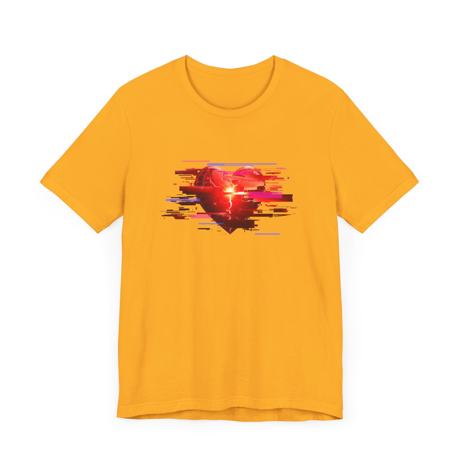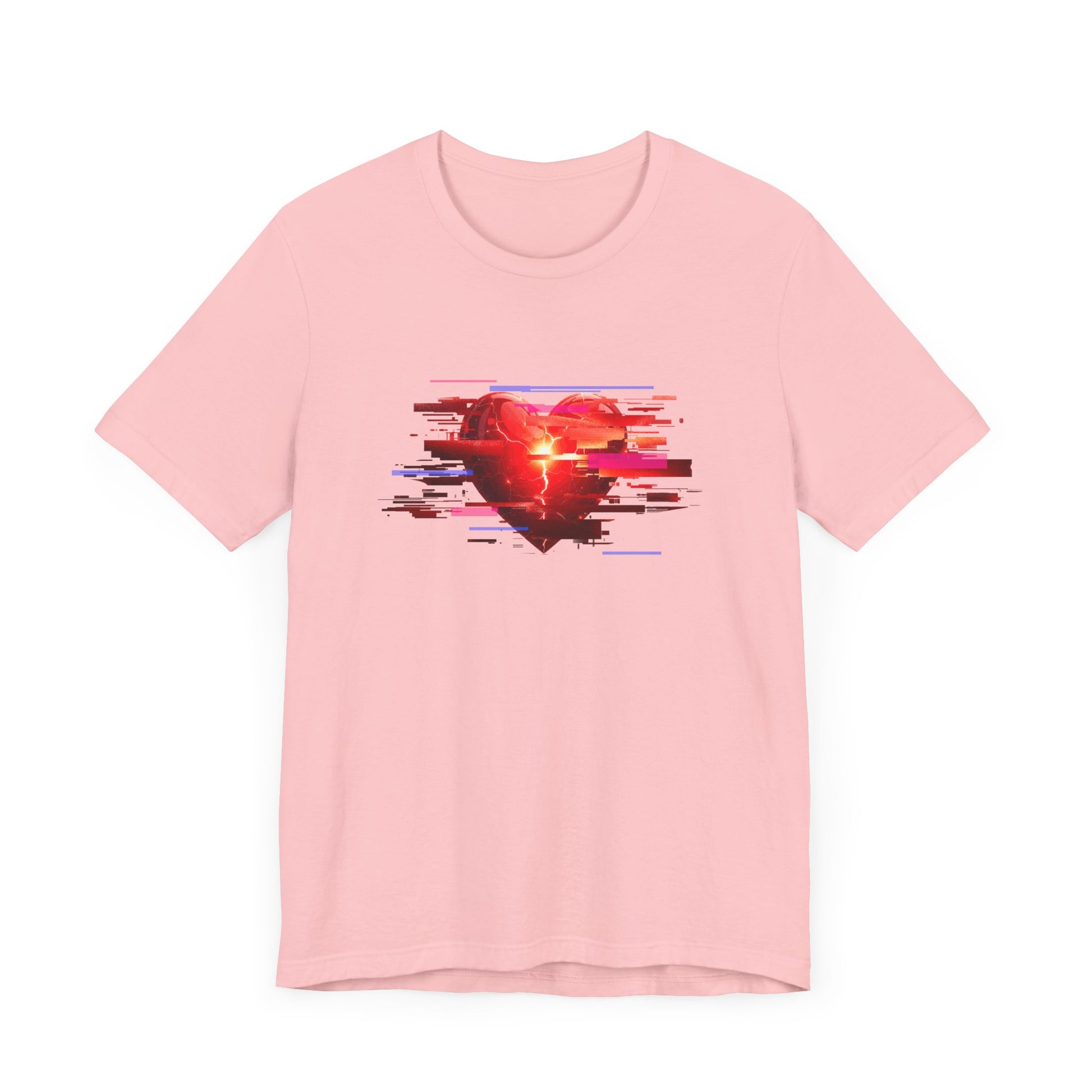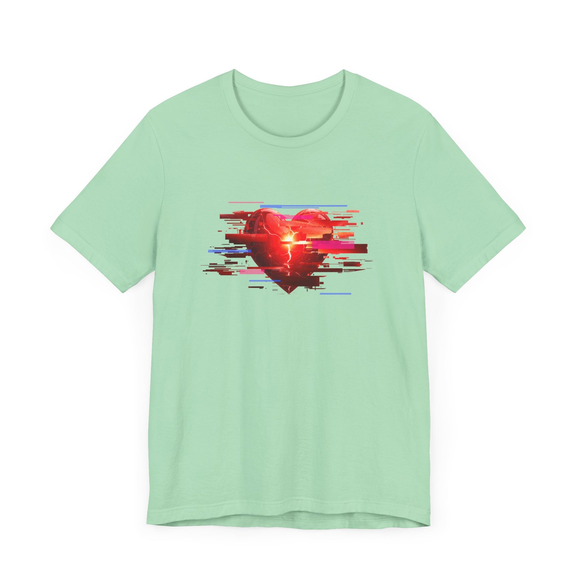 Show off your unique style with this eye-catching t-shirt featuring a modern "glitch" heart graphic. The heart is creatively designed with rectangular color patches of varying sizes, giving it a digital, pixelated effect that stands out from the crowd. Perfect for art lovers, tech enthusiasts, or anyone who appreciates bold, contemporary designs, this shirt adds a pop of color and creativity to any outfit. Made from soft, high-quality fabric for all-day comfort and lasting style.