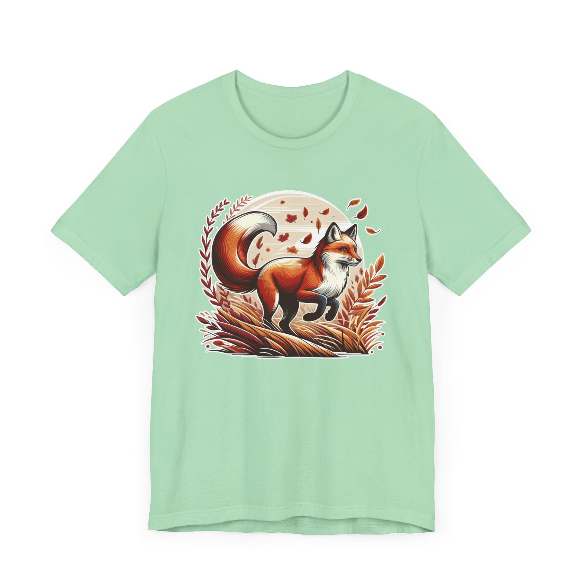 Capture the grace and agility of nature with this elegant t-shirt featuring a beautiful fox mid-jump over a grain field. The design showcases the fox’s fluid motion with a few leaves gently flying in the background, adding a dynamic and natural touch. Perfect for wildlife lovers and fans of serene outdoor scenes, this shirt blends artistry and nature-inspired style. Made from soft, high-quality fabric, it offers comfort and durability for everyday wear or outdoor adventures.