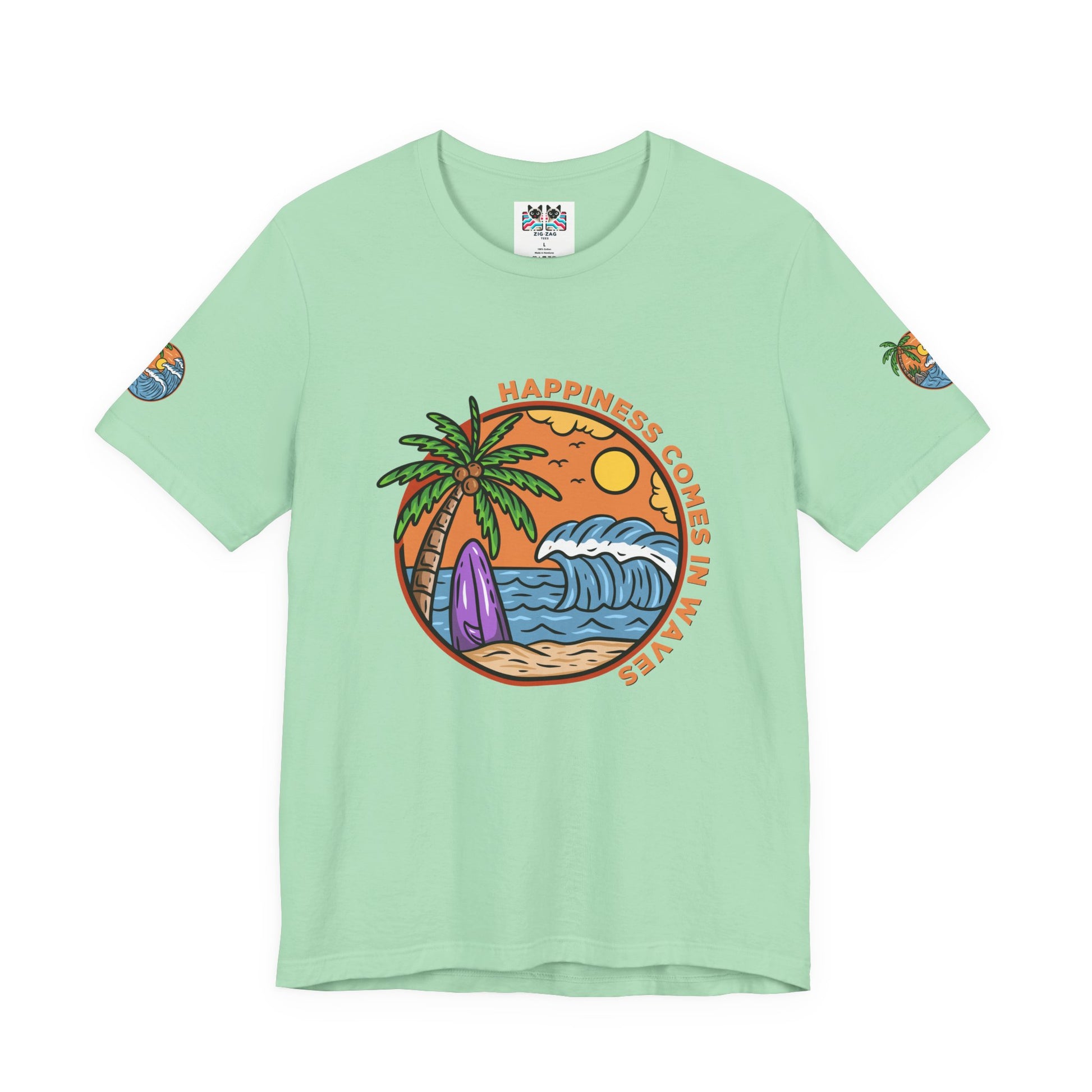 Happiness Comes in Waves T-Shirt – Beach Surf Palm Tree Ocean Graphic Tee