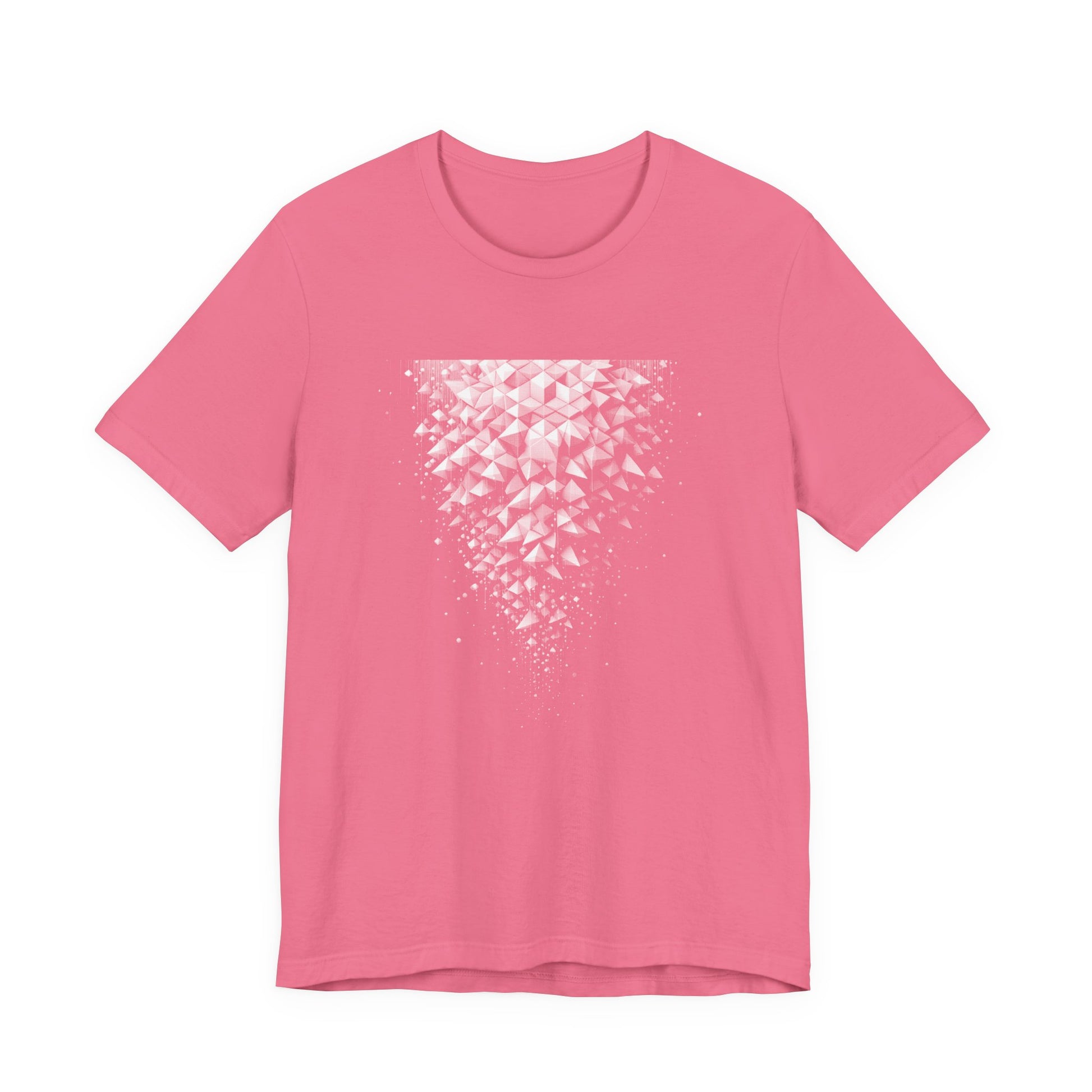 Experience modern geometric style with this "Hexagonal Flow" t-shirt! The graphic features a dynamic cascade of hexagons, flowing from top to bottom as if they are gently falling. This visually striking design blends the precision of hexagonal grids with the energy of movement, creating a soothing yet bold pattern that stands out. Perfect for fans of abstract art, geometric patterns, and contemporary fashion, this tee is crafted from soft, comfortable fabric—ideal for making a statement in any setting