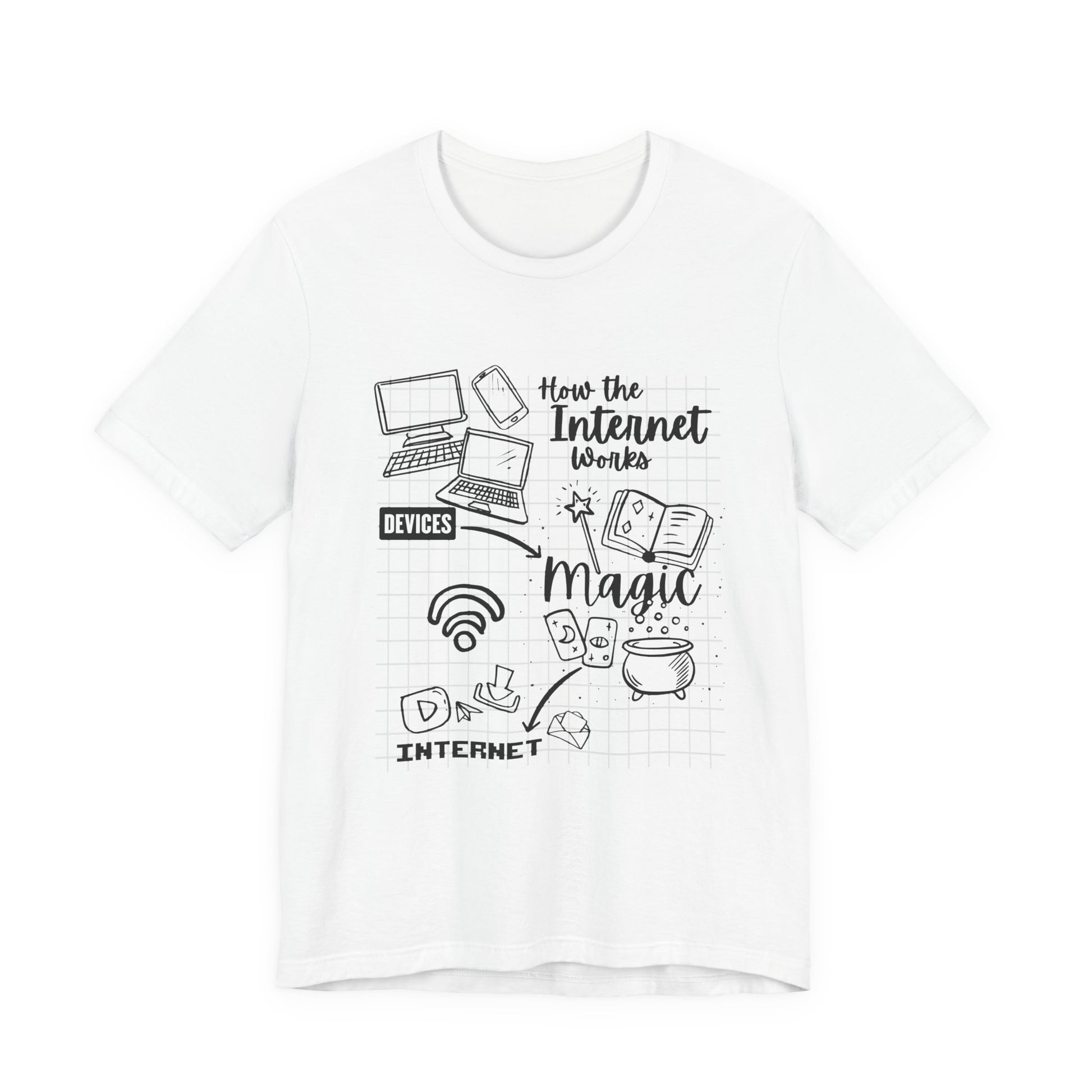 How the Internet Works Tshirt – Devices to Magic to Internet Flow Diagram