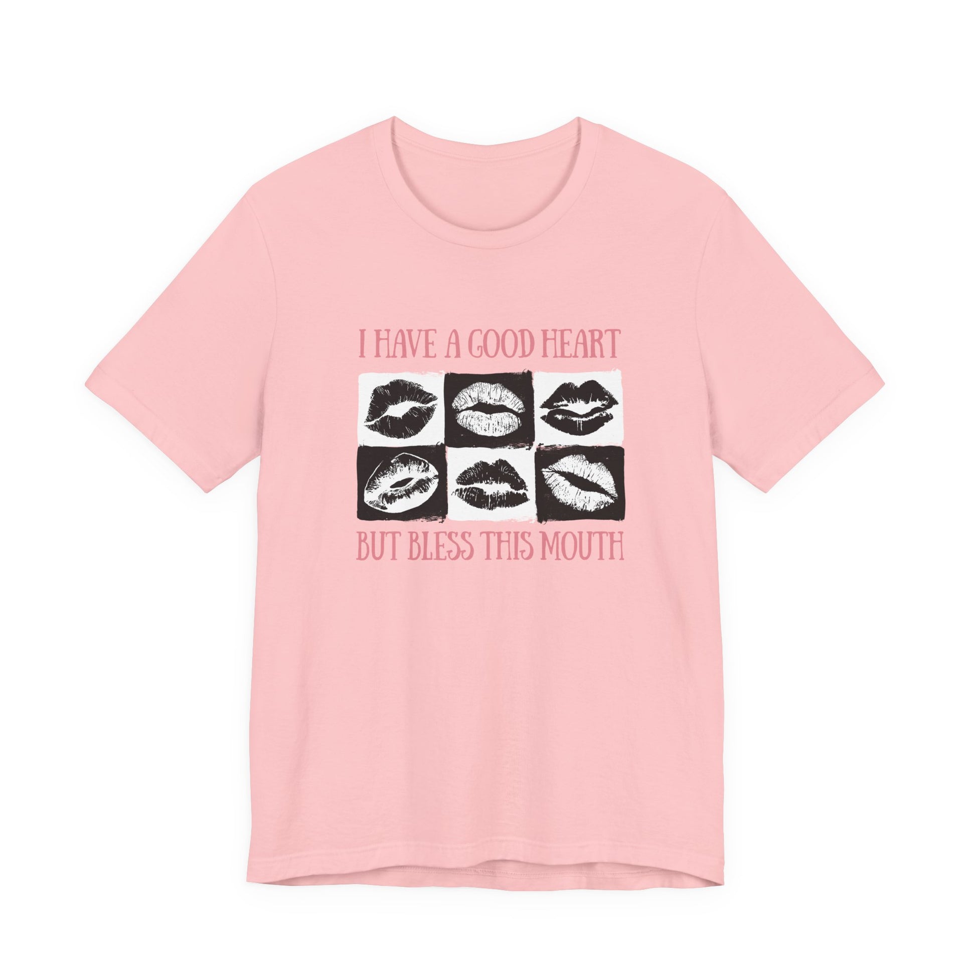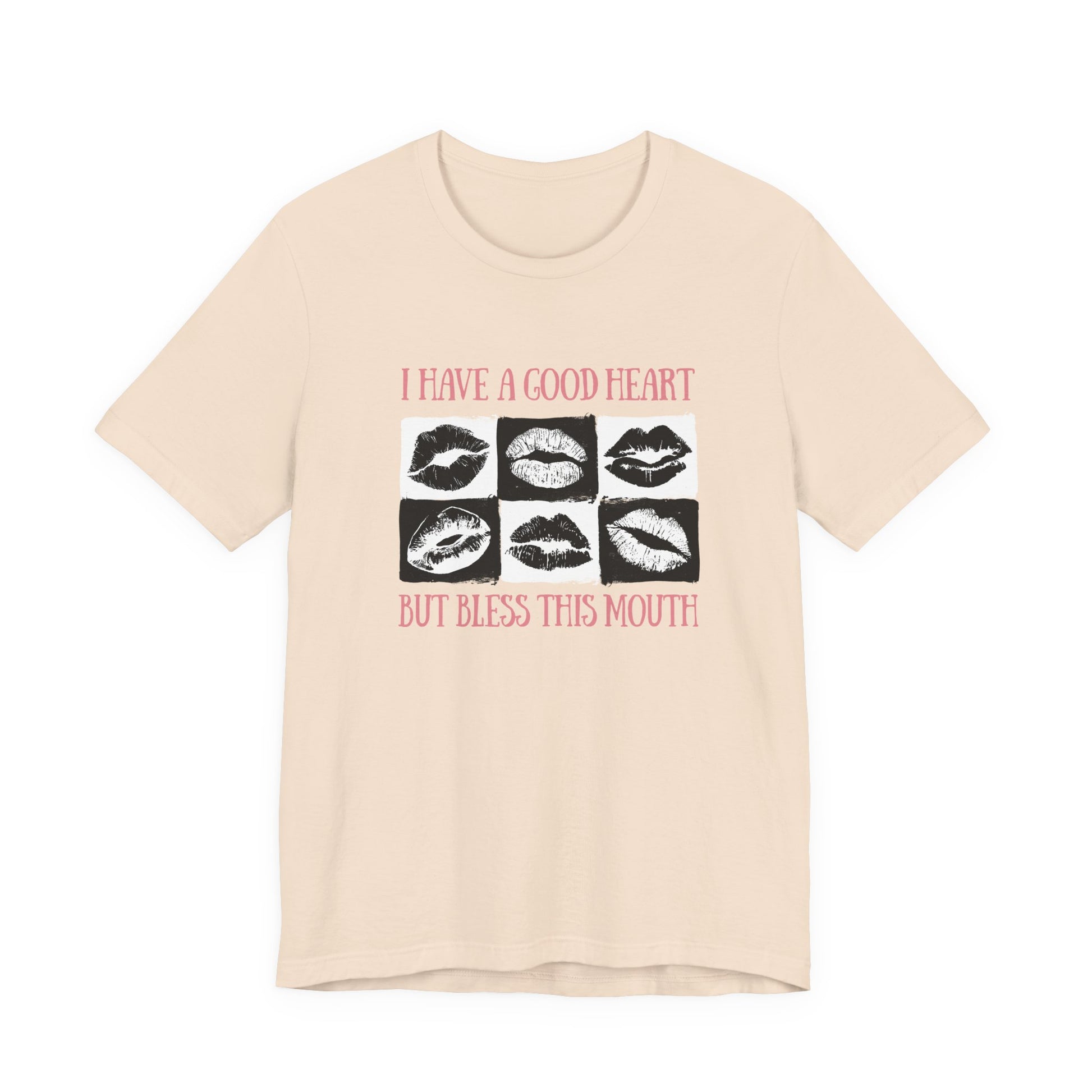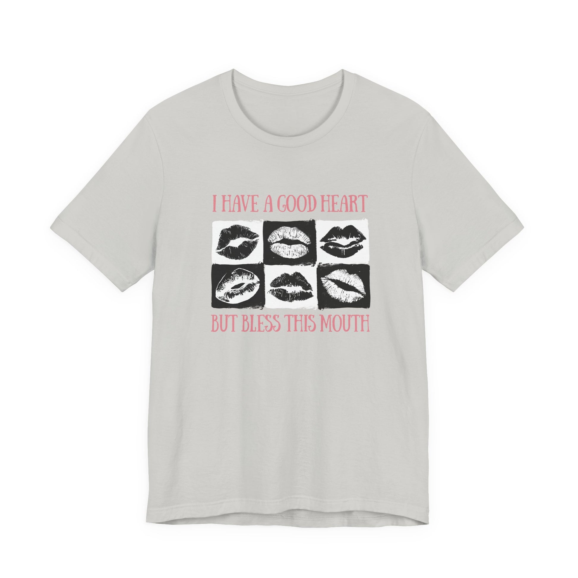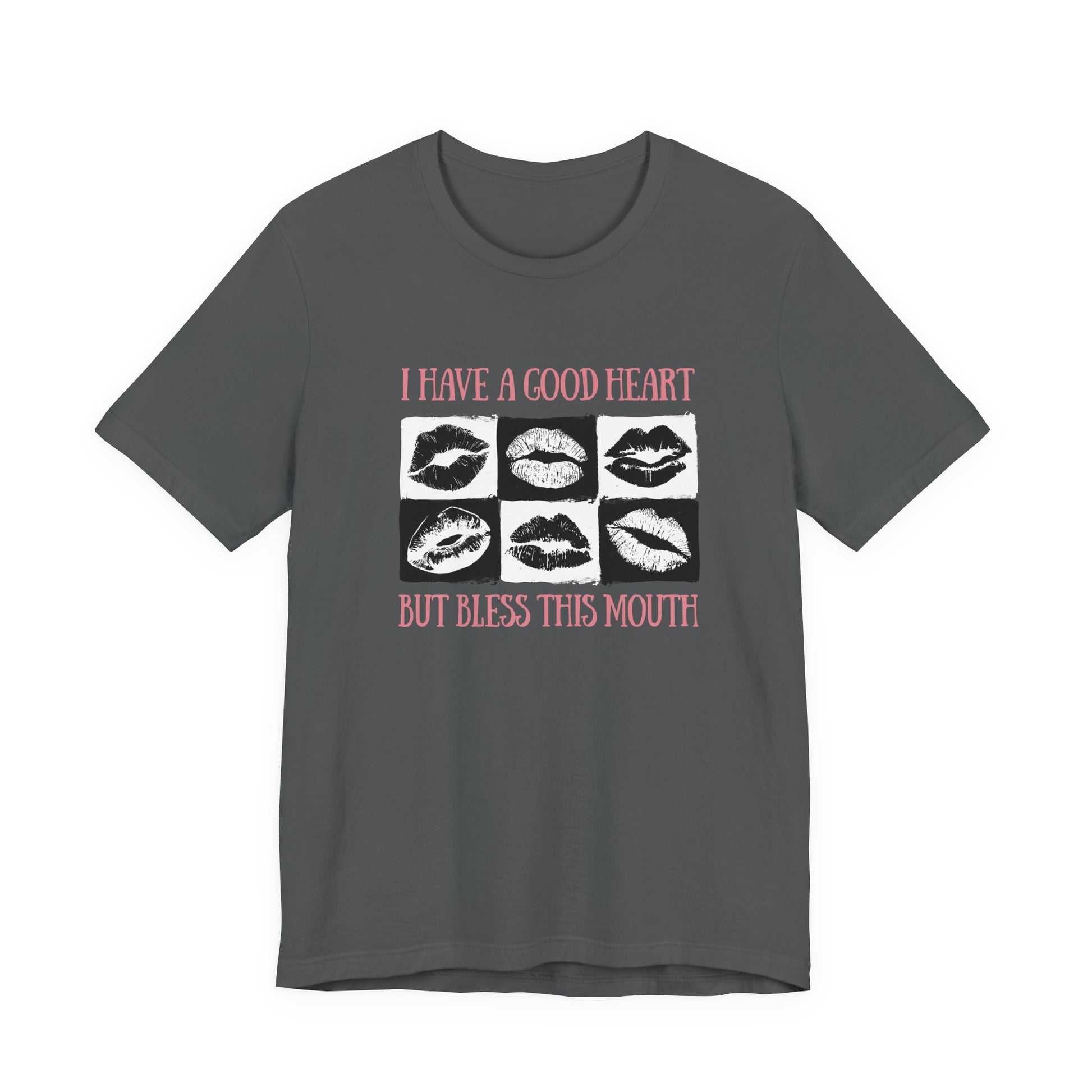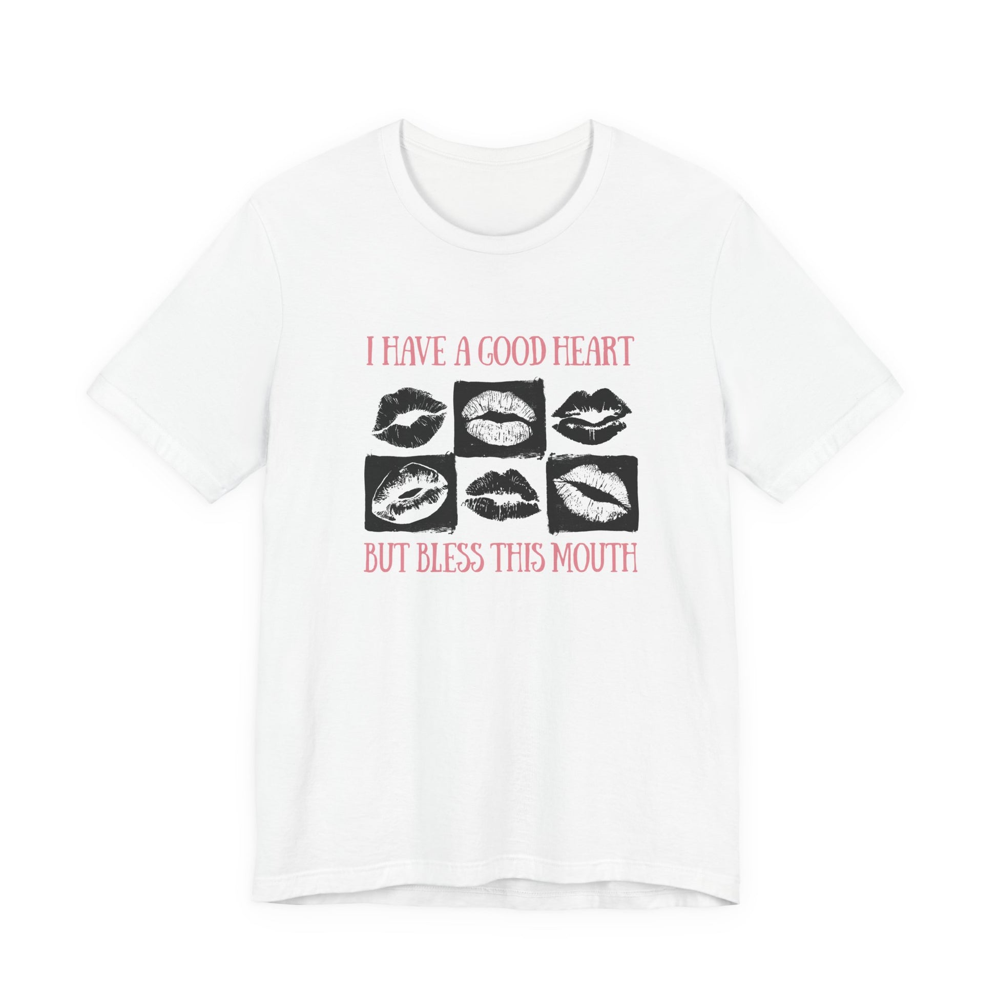 I Have a Good Heart But Bless This Mouth T Shirt – Six Black & White Lip Print