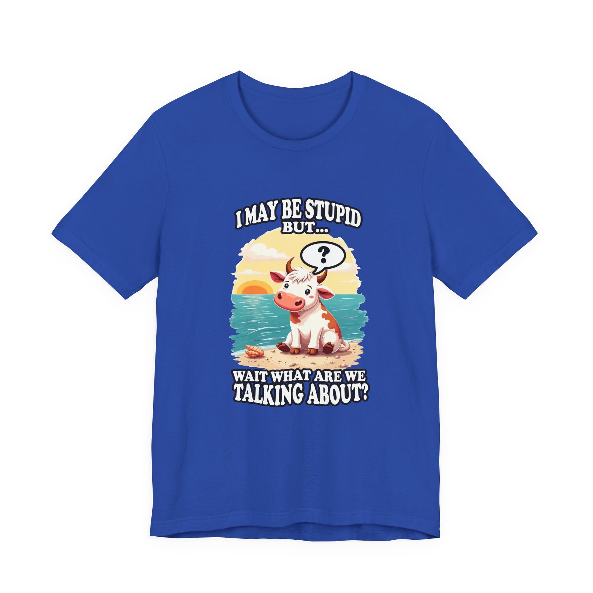 I May Be Stupid But… Wait, What Are We Talking About? – Confused Cow Beach Tshirt