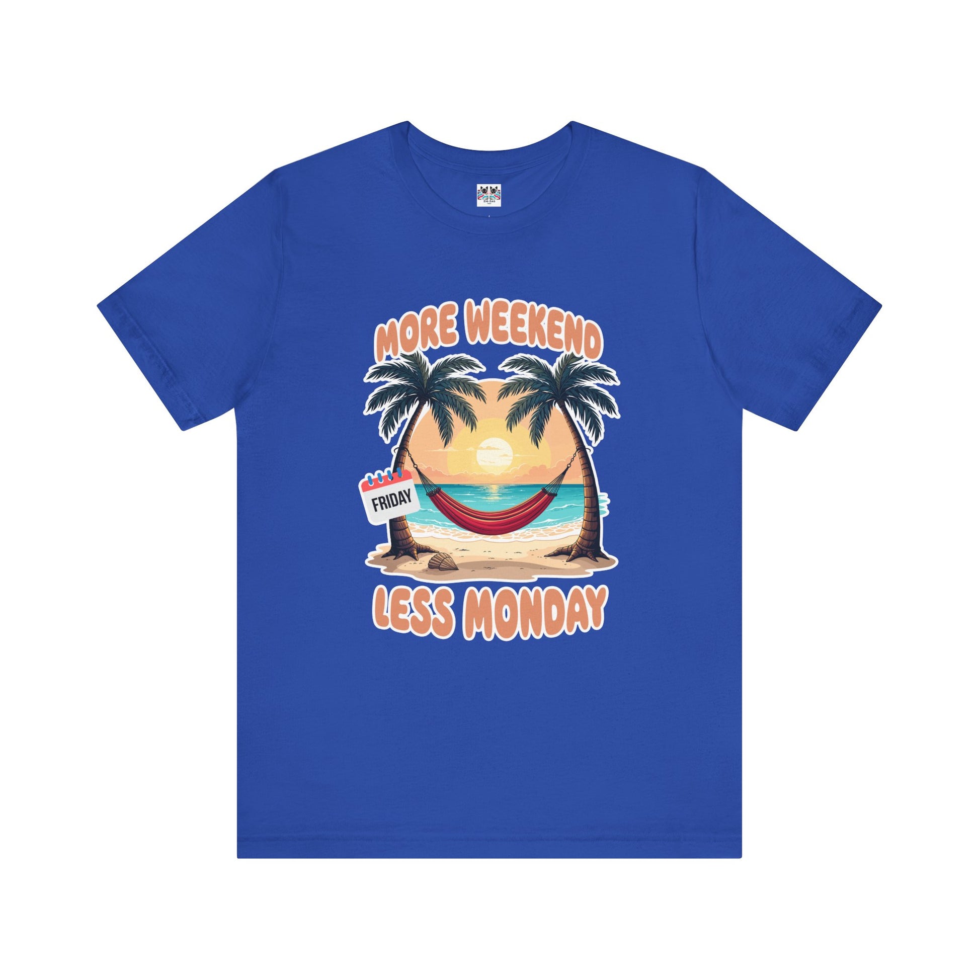 If you're constantly counting down to Friday, this shirt was made for you. With palm trees swaying, a beach hammock ready, and that iconic "More Weekend, Less Monday" vibe, it’s the perfect blend of humor and truth. Wear it to manifest your next long weekend, or just to let the world know you're mentally out-of-office. #MoreWeekendLessMonday #IslandMood #TropicalEscape #WeekendVibes #ChillGoals #PalmParadise #BeachPlease
